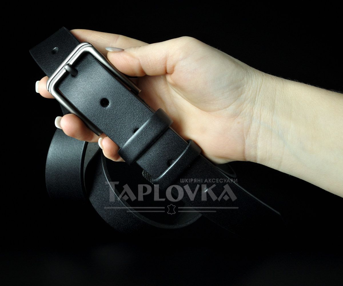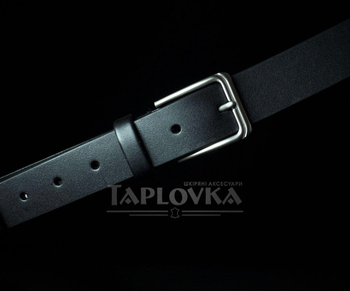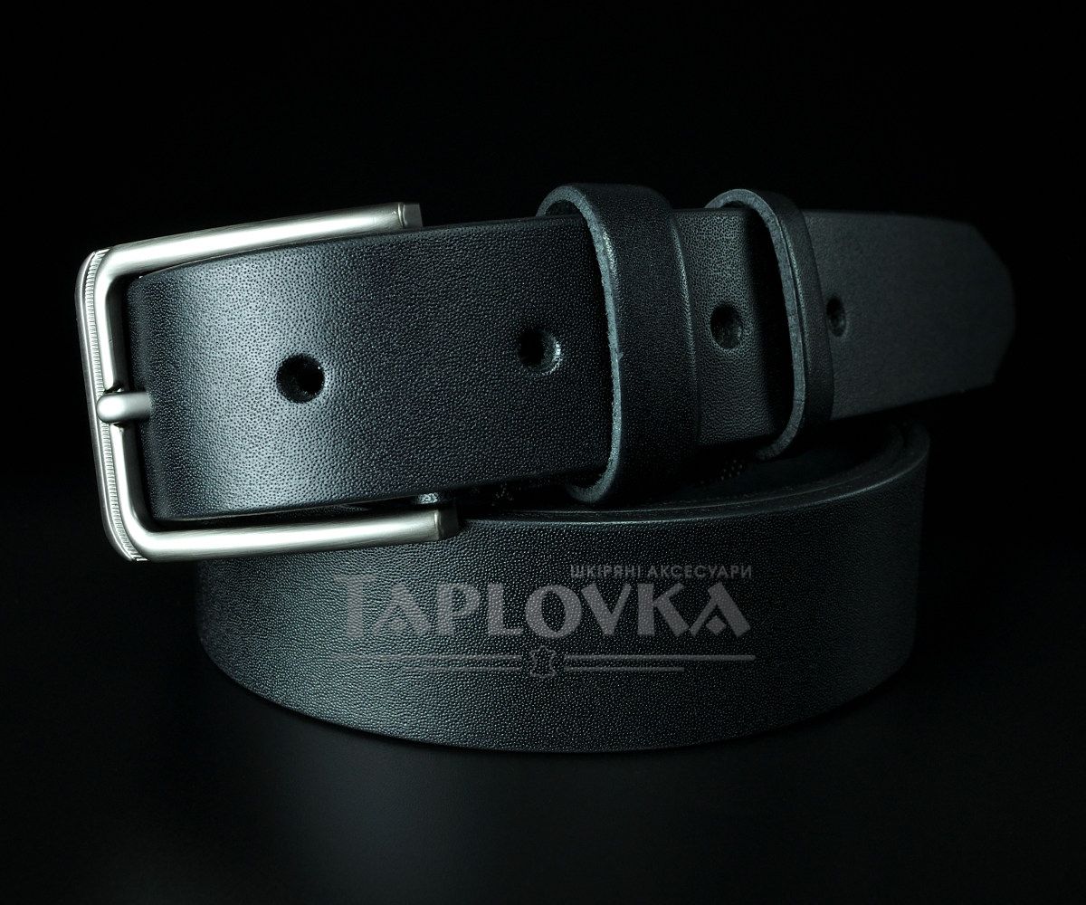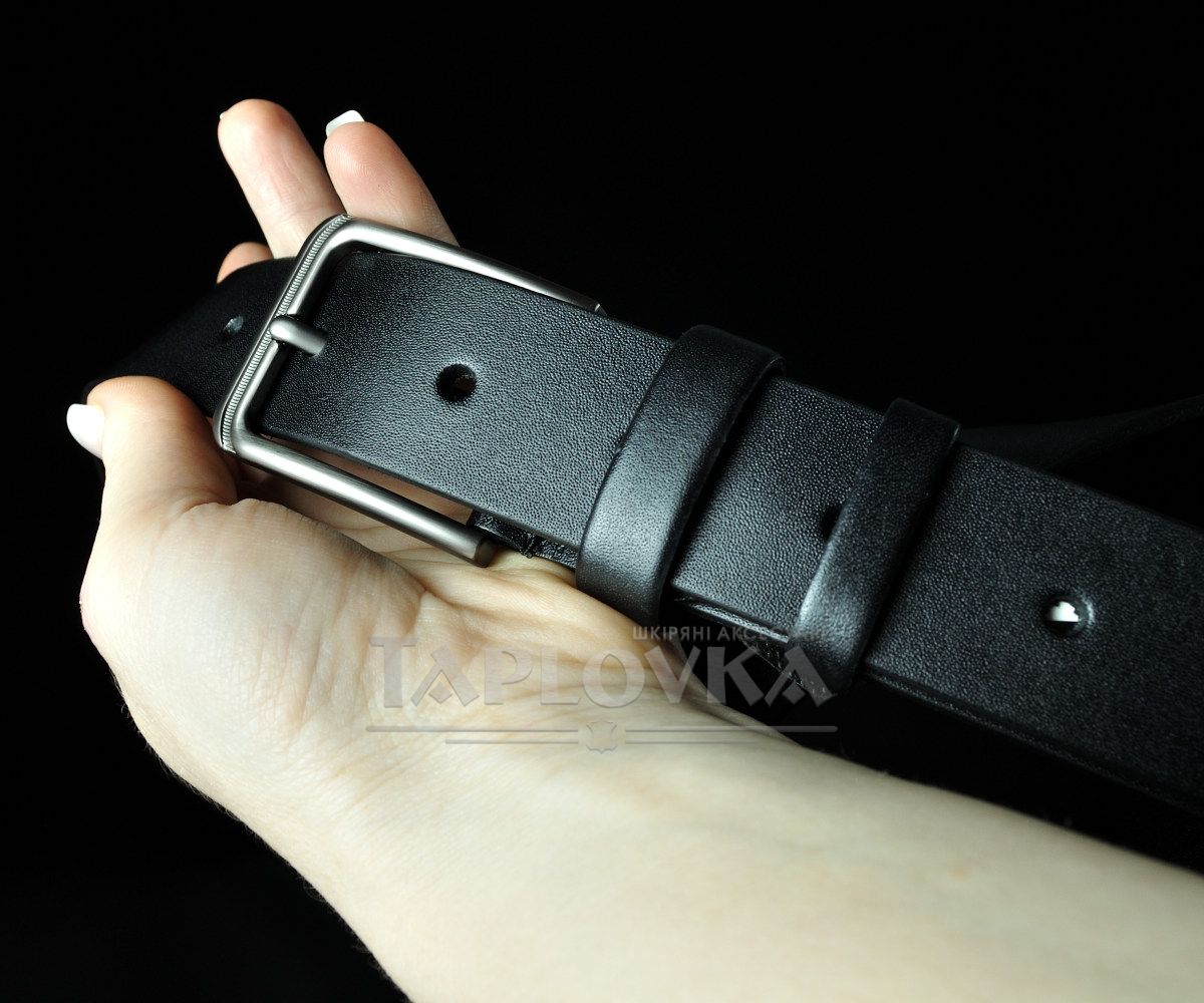 Чоловічий шкіряний ремінь чорний гладкий 3,5 см (класична пряжка нікель)