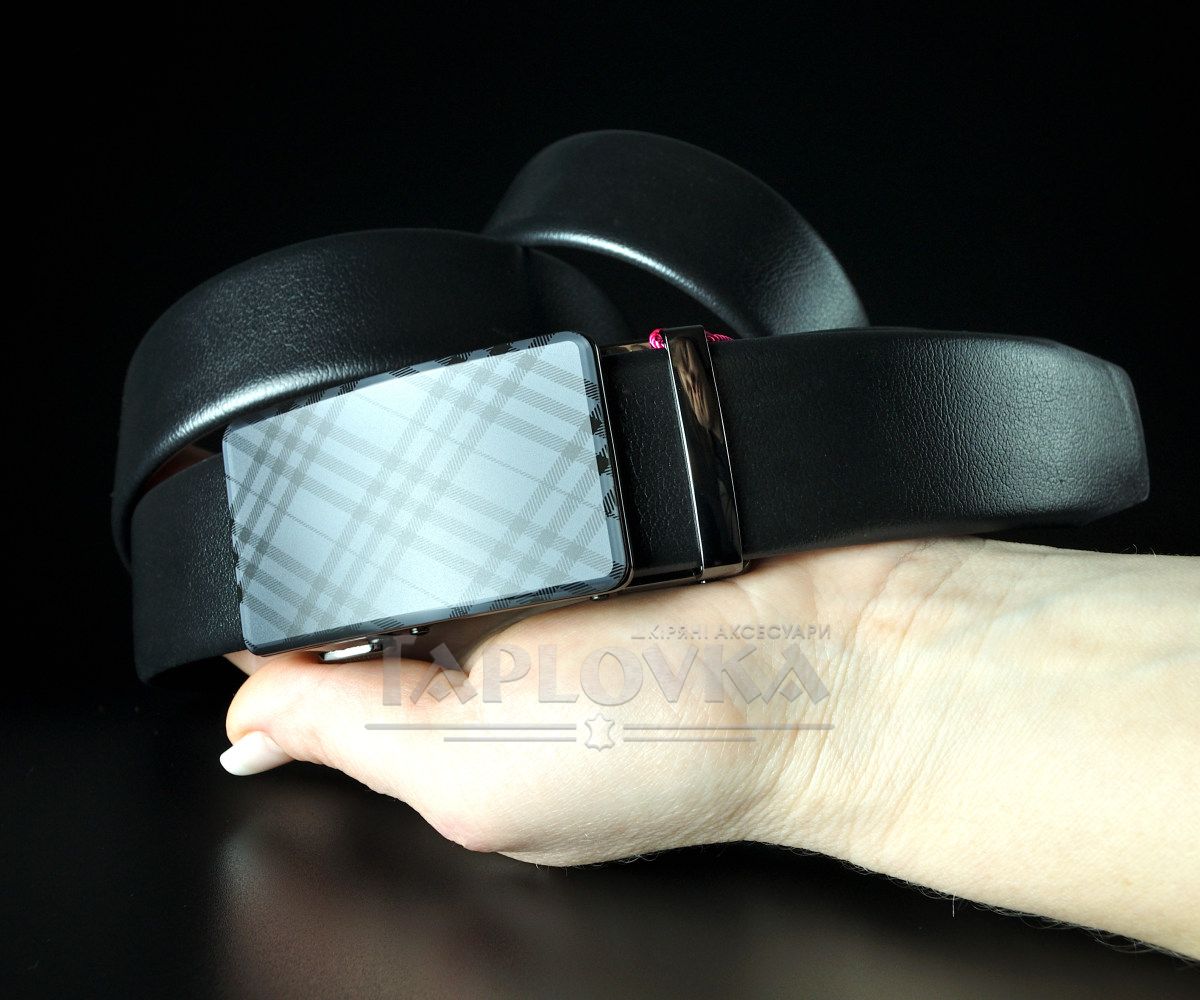 Чоловічий шкіряний ремінь De Esse чорний автомат (133 см), пряжка з переливом