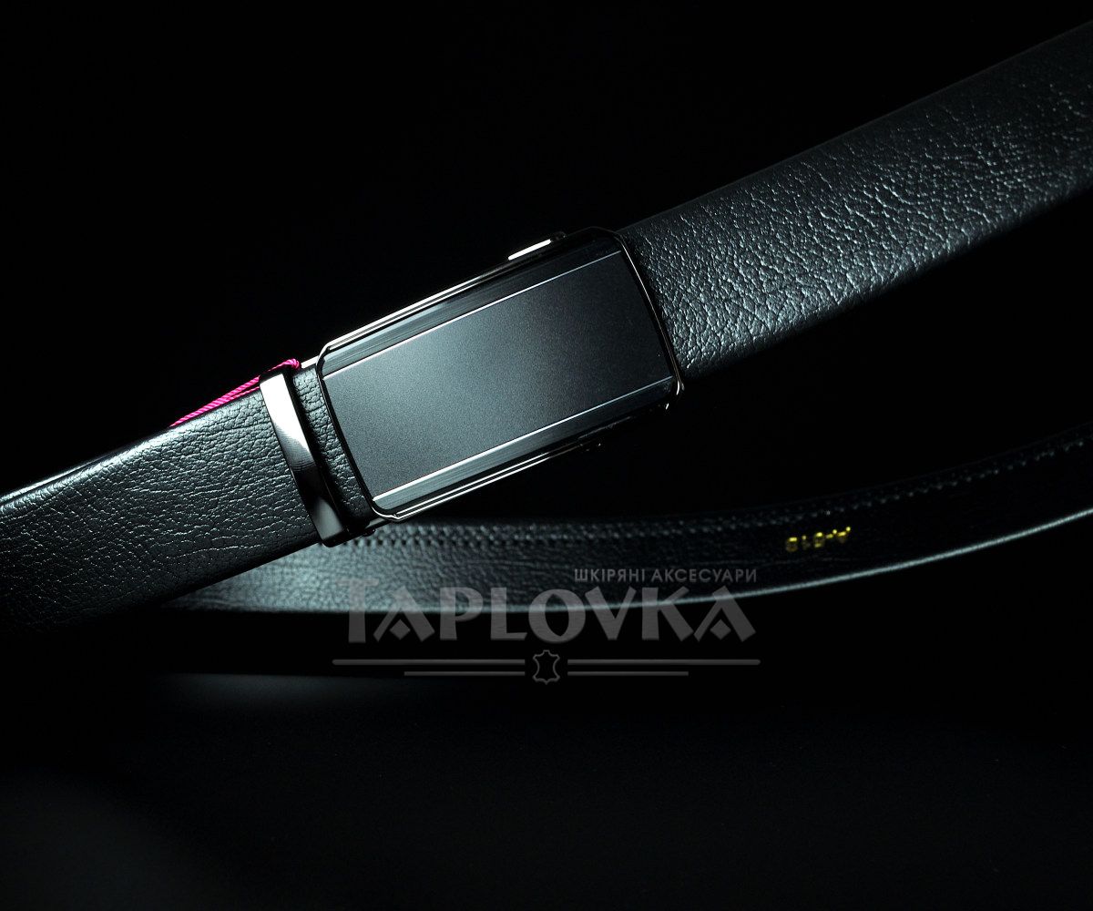 Ремінь виготовлено з якісної натуральної шкіри зі структурною (зернистою) фактурою, яка стійка до заломів та механічних пошкоджень. Пряжка-автомат виконана в мінімалістичному дизайні з лаконічним малюнком, що додає аксесуару особливої вишуканості. Ширина 3,5 см ідеально пасує до ділових штанів та повсякденних джинсів.