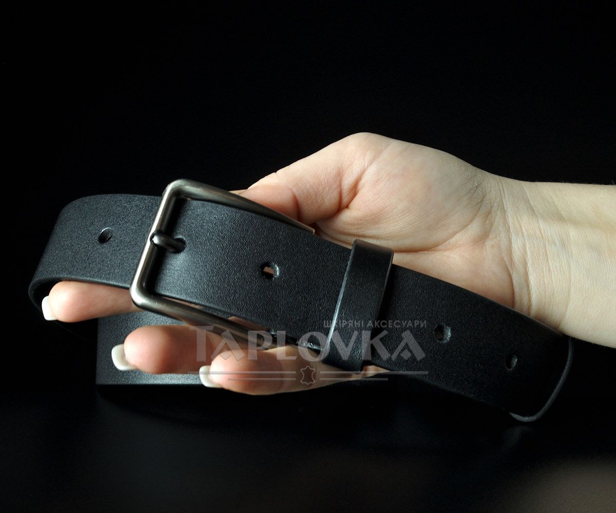 Чоловічий шкіряний ремінь Kremen батал чорний гладкий 3,5 см — 142 см (класична пряжка)