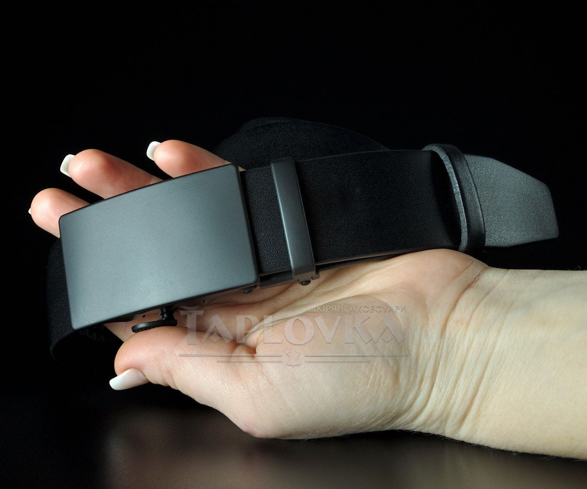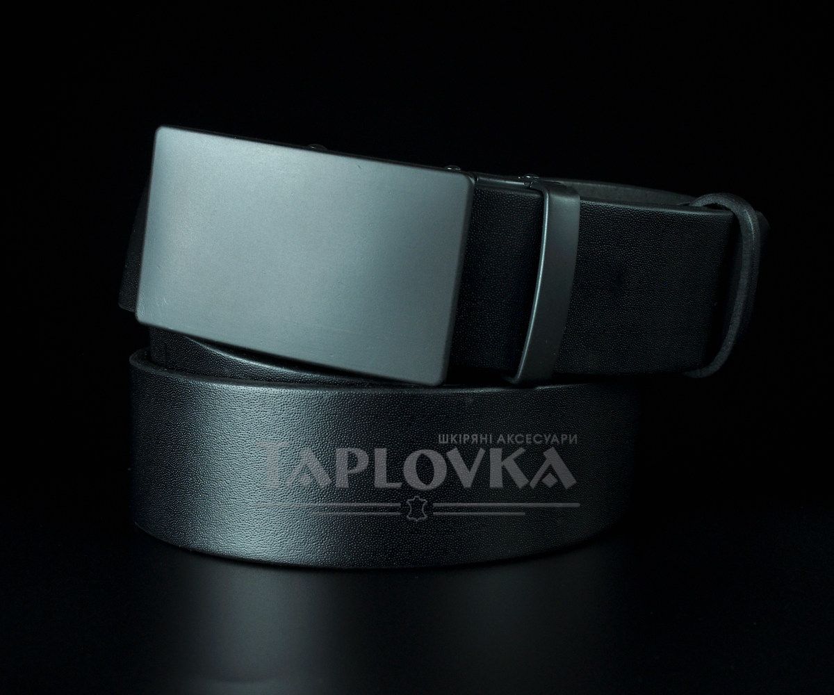 Чоловічий шкіряний ремінь Kremen чорний 3,7 см — 122 см (чорна матова пряжка автомат)