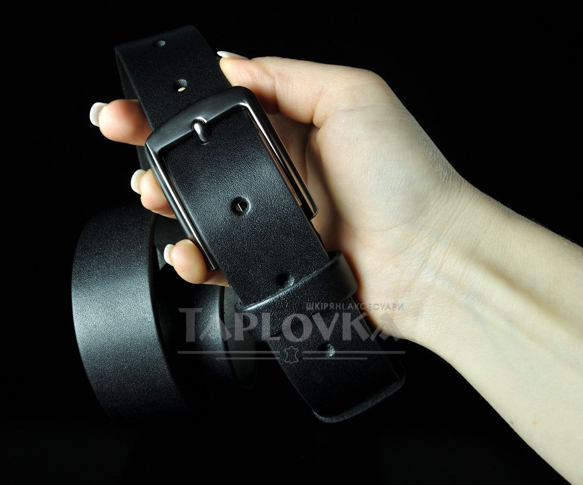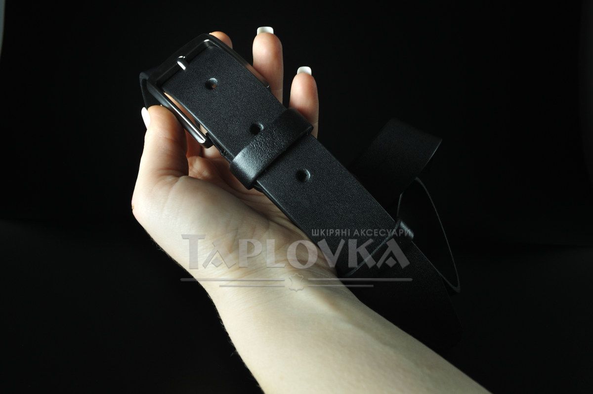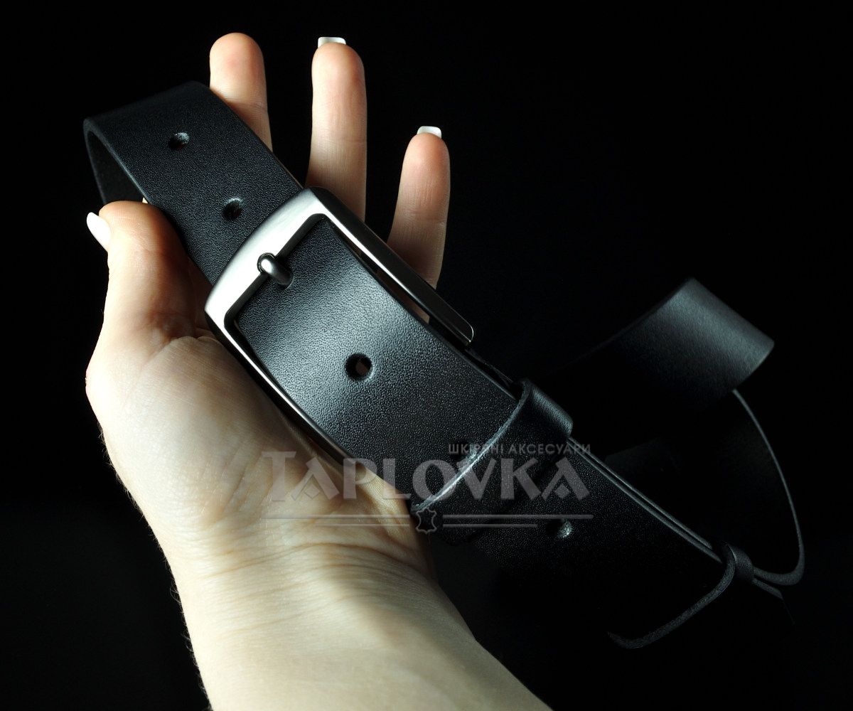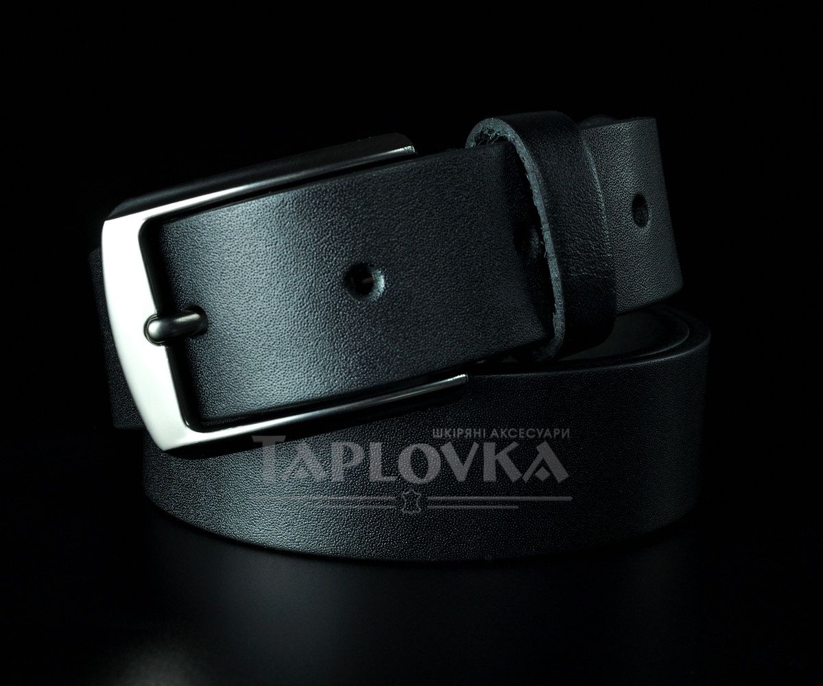 Чоловічий шкіряний ремінь Kremen чорний гладкий 3,5 см (класична пряжка)