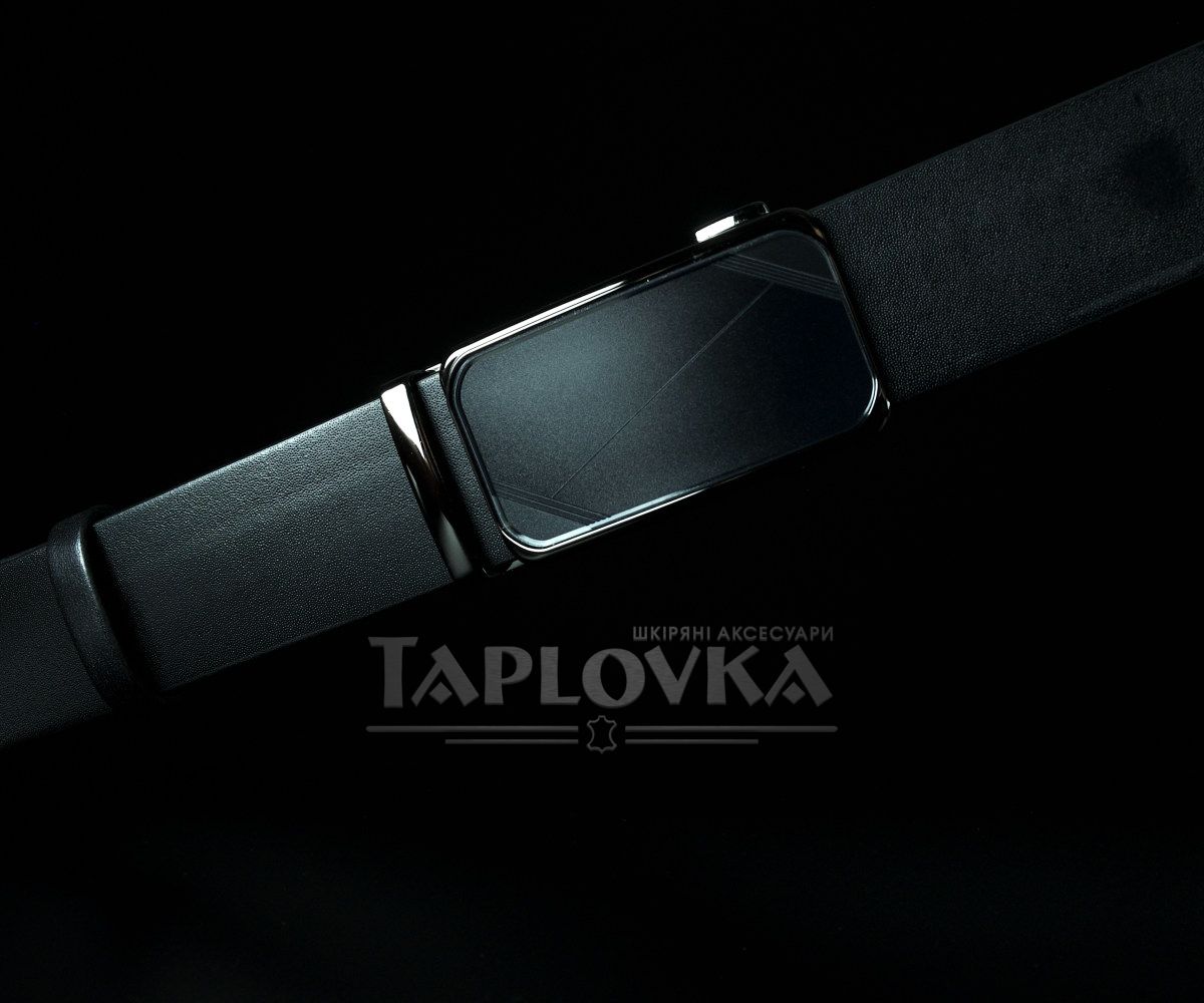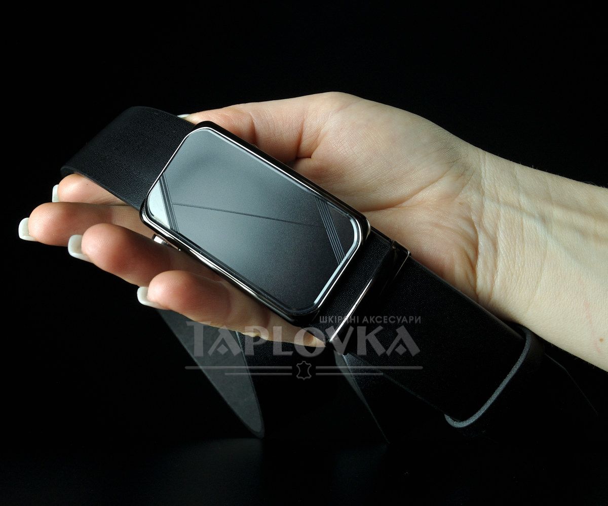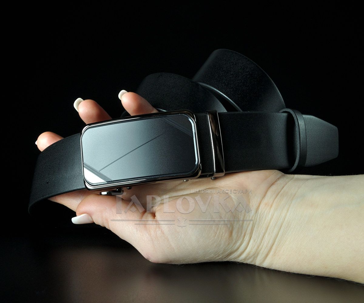 Чоловічий шкіряний ремінь Kremen чорний гладкий 3,7 см — 121 см (чорна пряжка автомат)