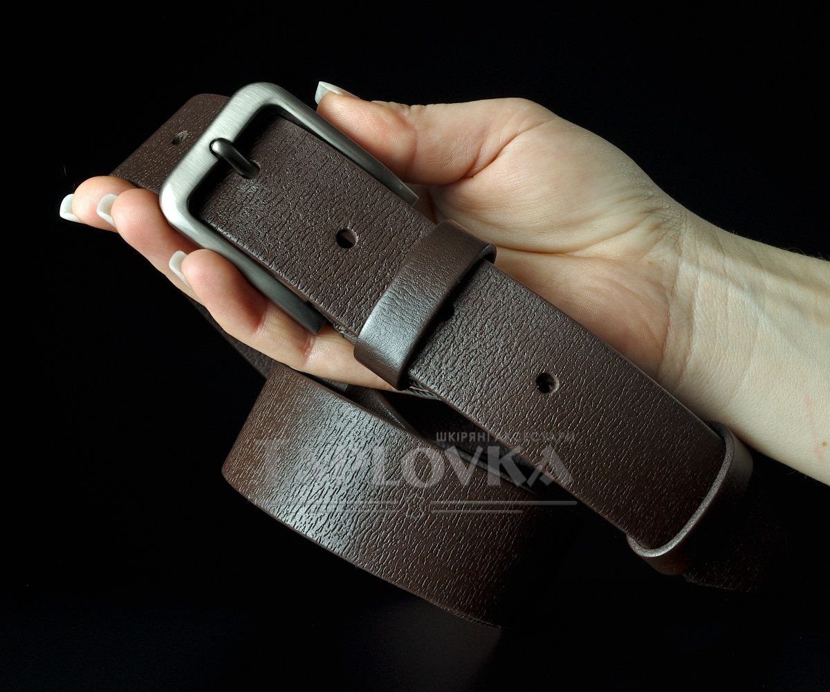 Чоловічий шкіряний ремінь Kremen коричневий структурний 3,5 см — 119 см (класична пряжка)