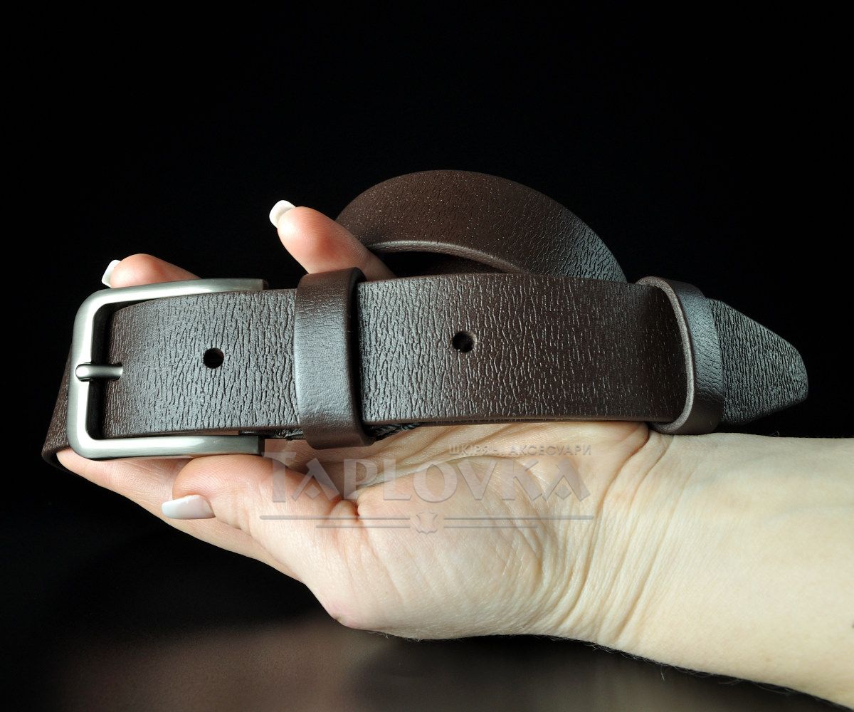 Ремінь виготовлено з добірної натуральної шкіри у глибокому коричневому відтінку. Головною особливістю моделі є виражена структурна фактура полотна, яка надає виробу індивідуальності та візуальної глибини. Така поверхня є надзвичайно практичною у щоденному носінні: вона стійка до появи дрібних подряпин та зношування. Аксесуар оснащений надійною класичною металевою пряжкою зі стійким покриттям, що підкреслює стриманий стиль та гарантує тривалий термін експлуатації.