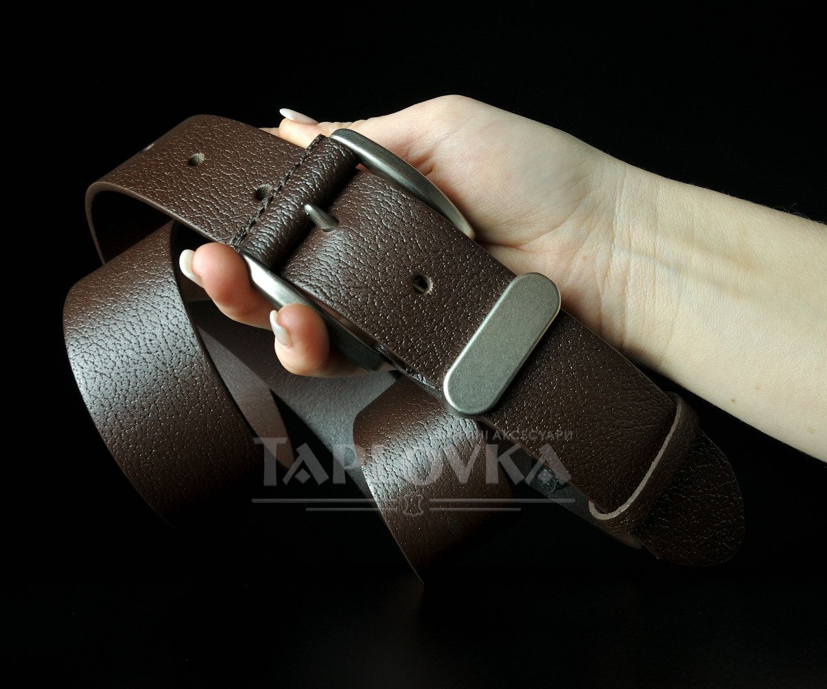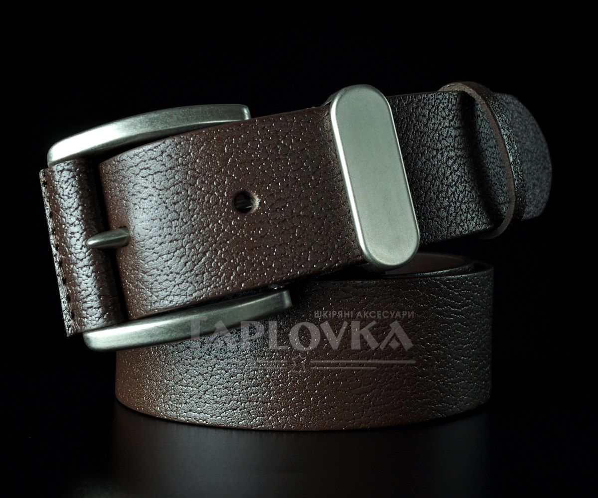 Чоловічий шкіряний ремінь Kremen коричневий структурний 4 см — 125 см (класична пряжка)