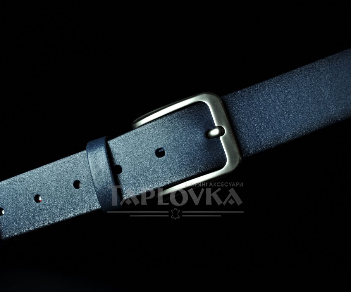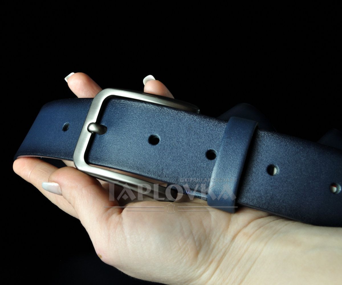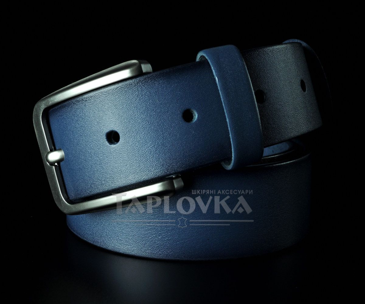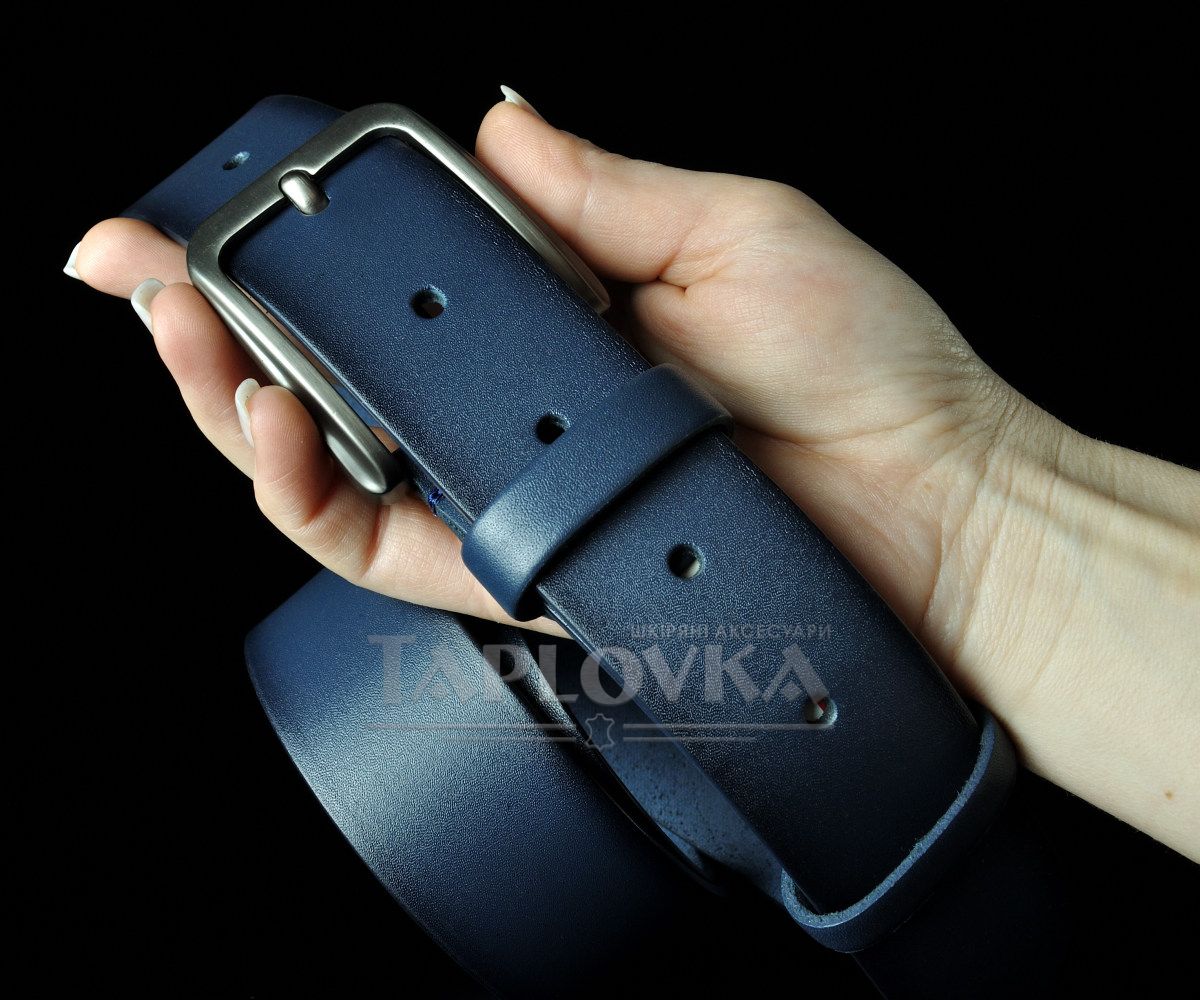 Чоловічий шкіряний ремінь Kremen синій з почорнінням країв 4 см (класична пряжка)