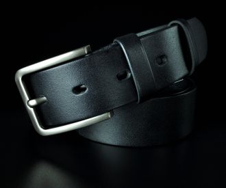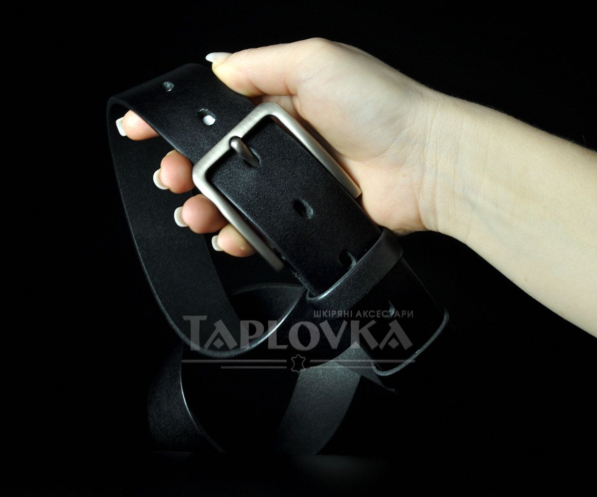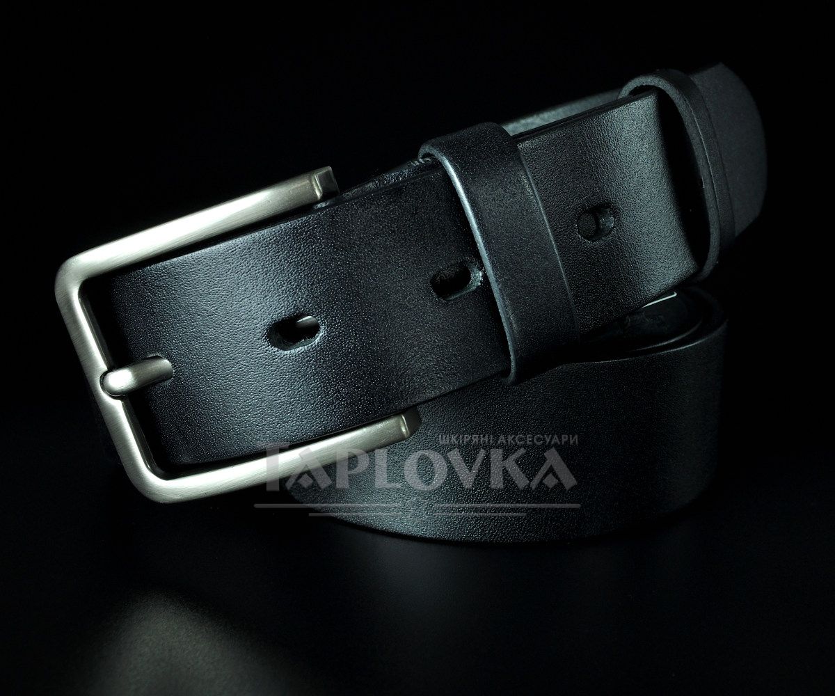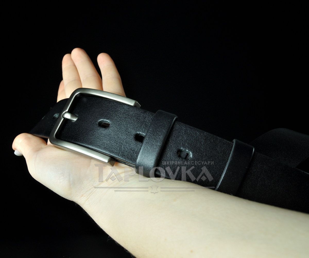 Чоловічий шкіряний ремінь преміум Kremen чорний 4 см (класична пряжка)