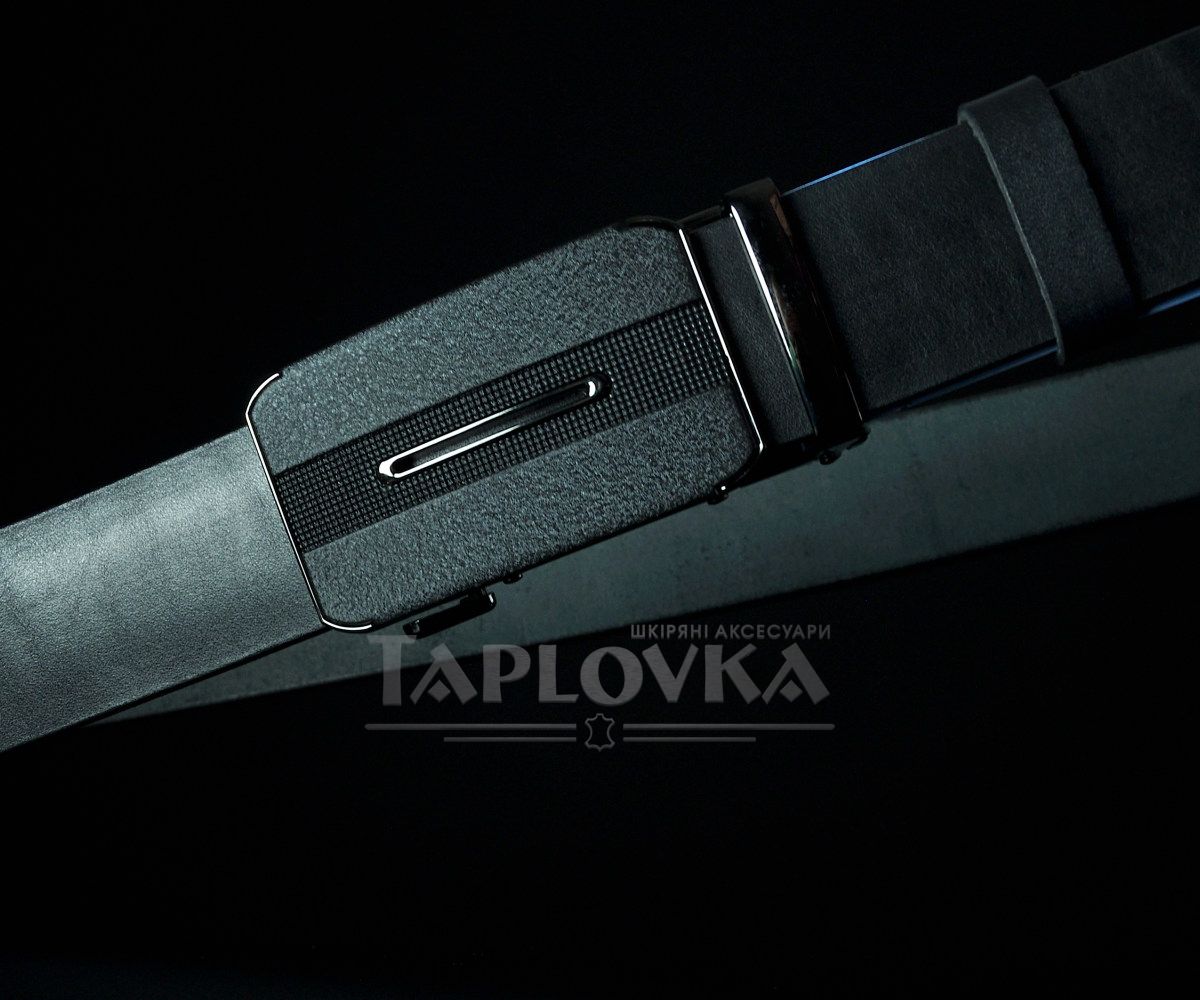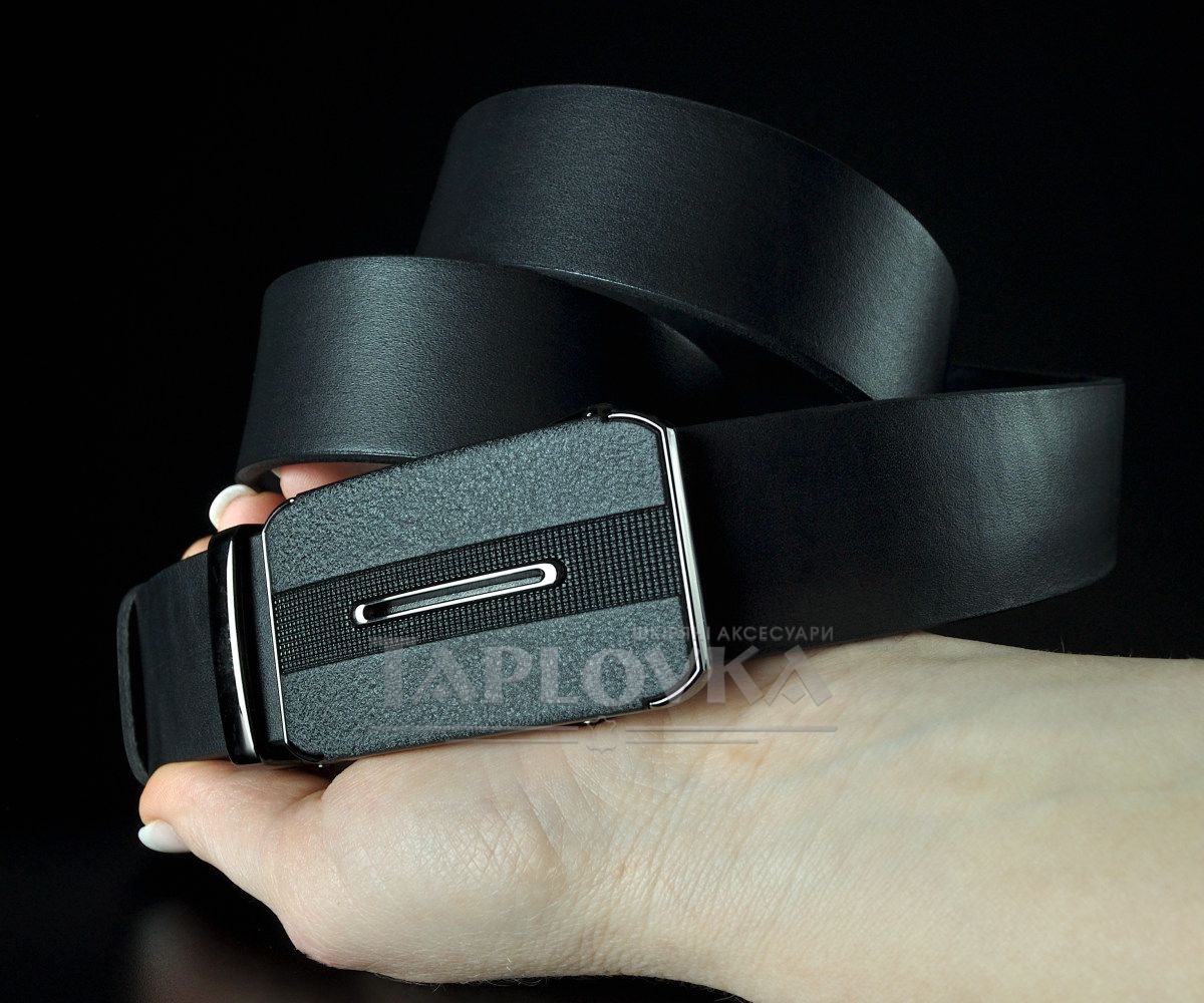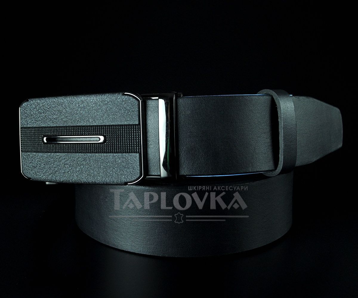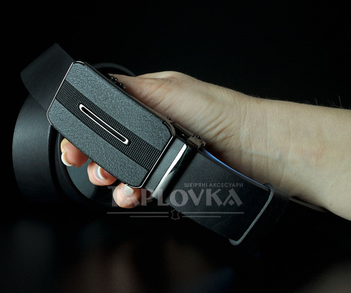 Чоловічий шкіряний ремінь SFIP автомат, гладкий чорний з матовою пряжкою (3,5 см)