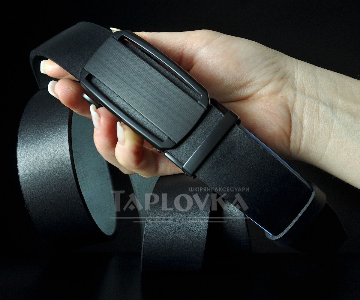 Чоловічий шкіряний ремінь SFIP автомат з гладкої шкіри без прошивки, чорний (135 см)