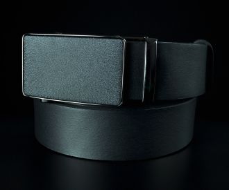 Ремінь виготовлено з добірної гладкої шкіри глибокого чорного кольору. Гладкий край полотна надає виробу особливої легкості та елегантності, що робить його універсальним доповненням до будь-якого гардероба. Головний акцент моделі — лаконічна автоматична пряжка з грубим матовим фінішем. Таке покриття надзвичайно практичне у щоденному використанні: воно не відблискує та надійно приховує відбитки пальців чи дрібні подряпини.