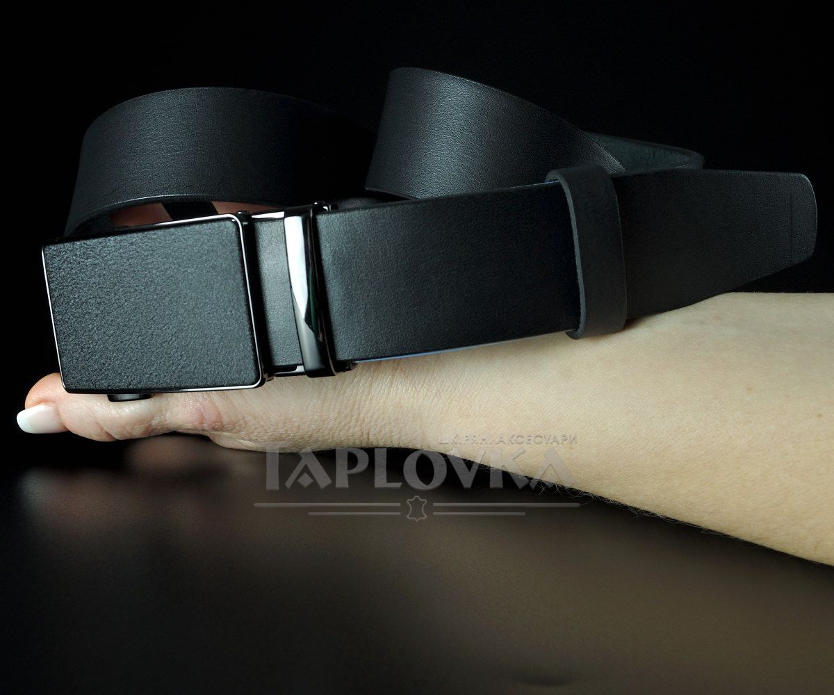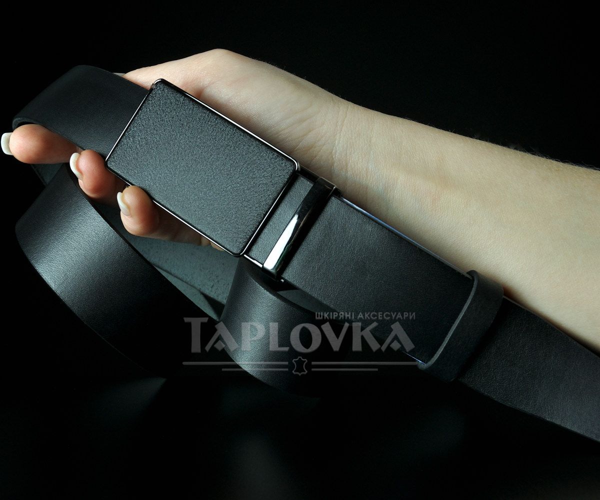 Чоловічий шкіряний ремінь SFIP автомат з гладкої шкіри без прошивки, чорний (3,5 см)