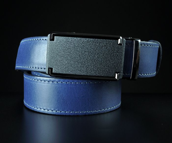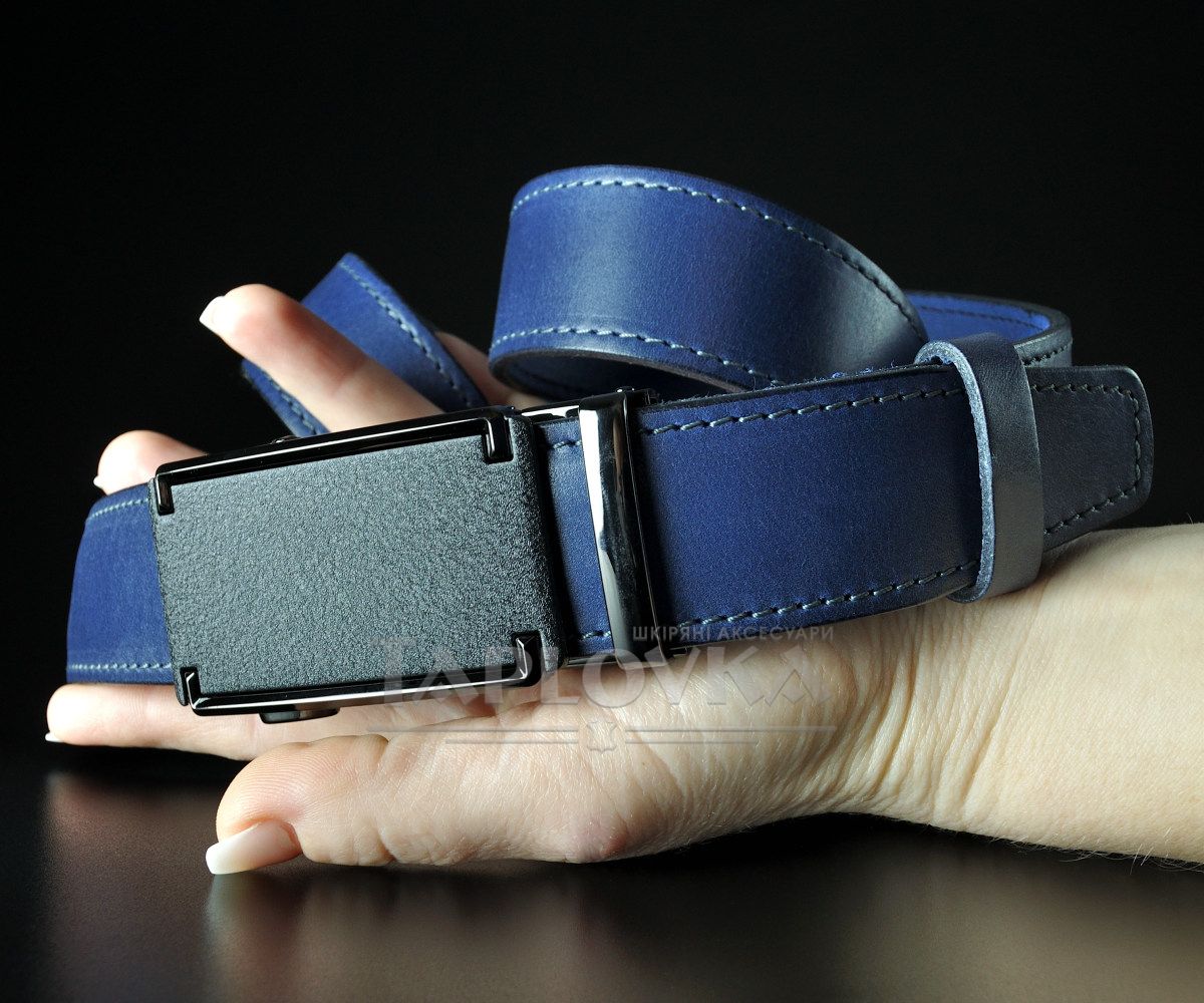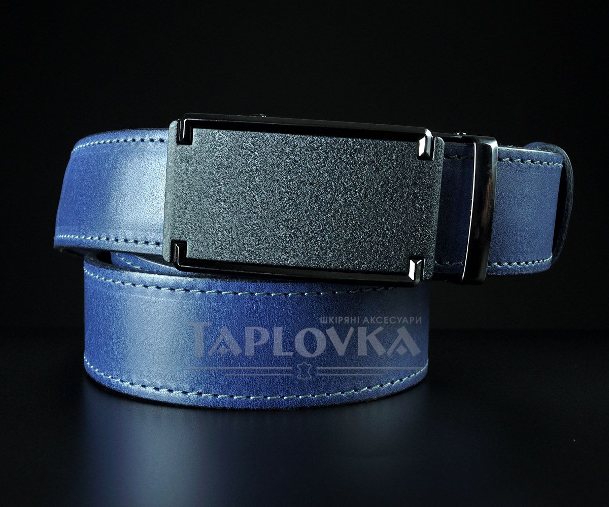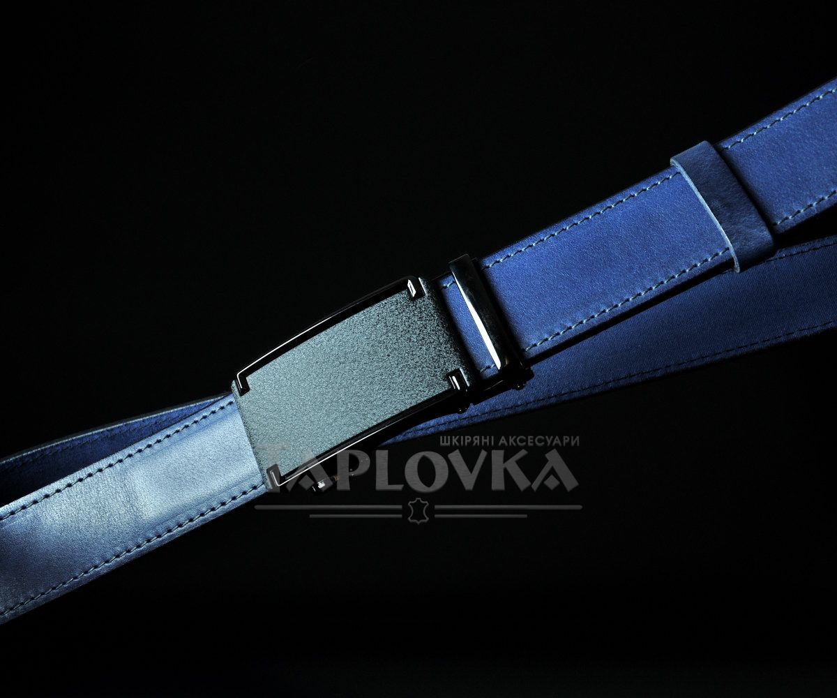 Чоловічий синій ремінь SFIP автомат прошитий, лаконічна матова пряжка (3,5 см)