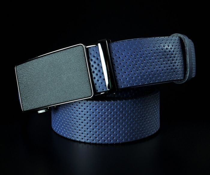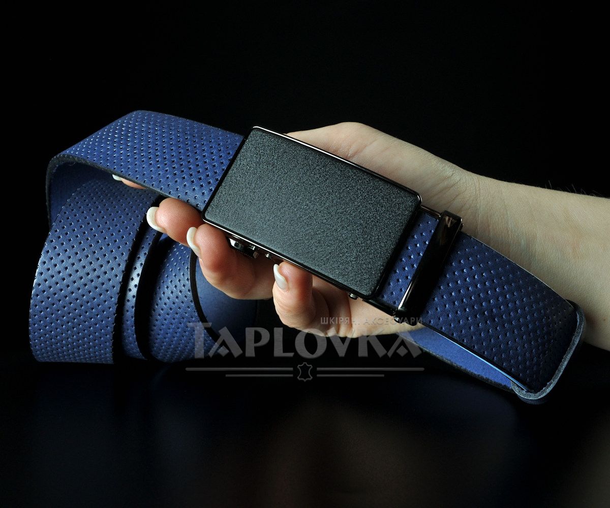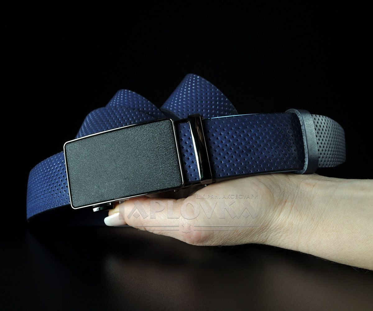 Чоловічий синій ремінь SFIP автомат з фактурним тисненням (3,5 см)
