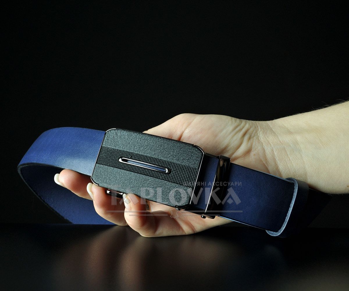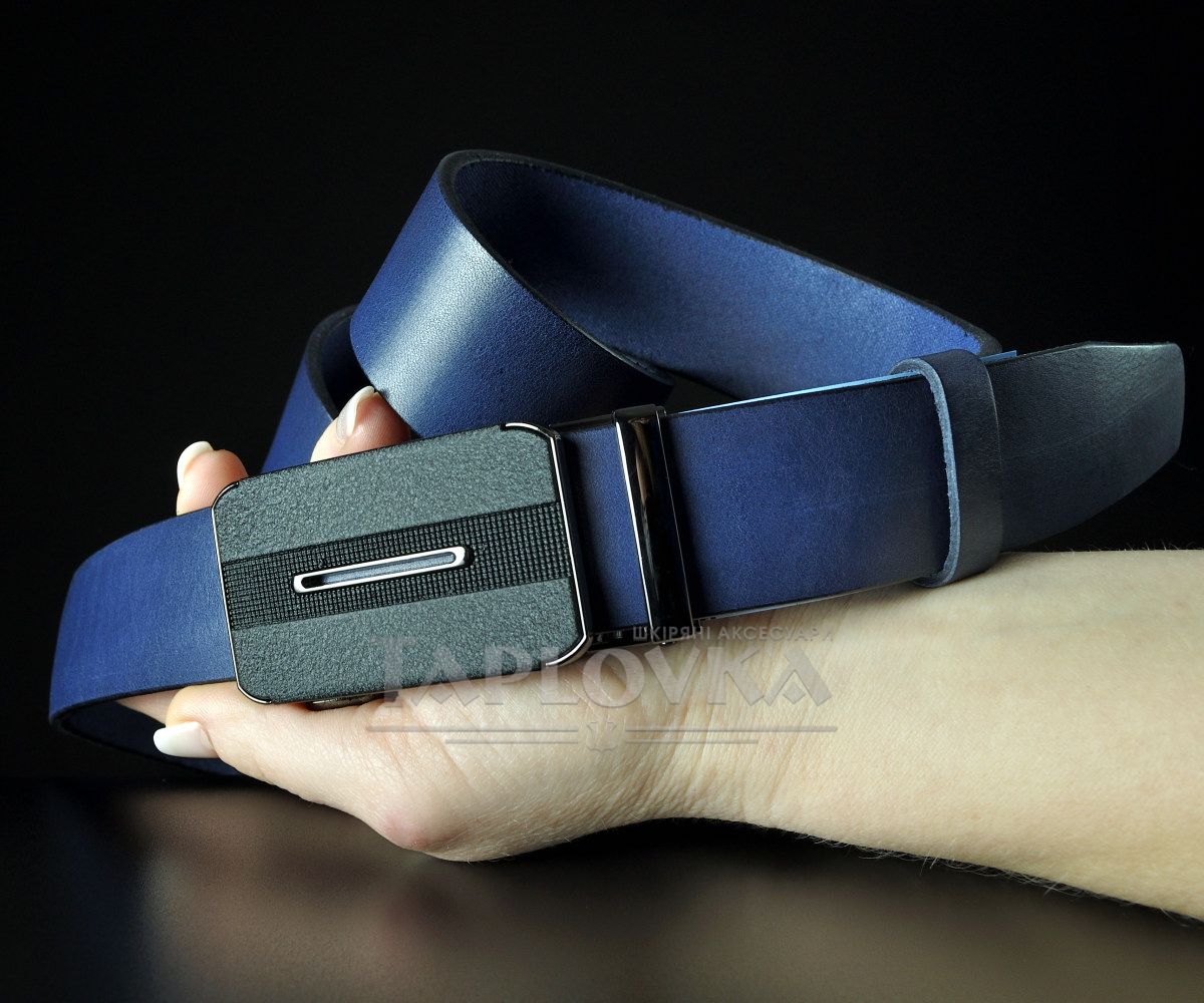 Чоловічий синій ремінь SFIP автомат з гладкої шкіри, пряжка з вишуканою вставкою (3,5 см)