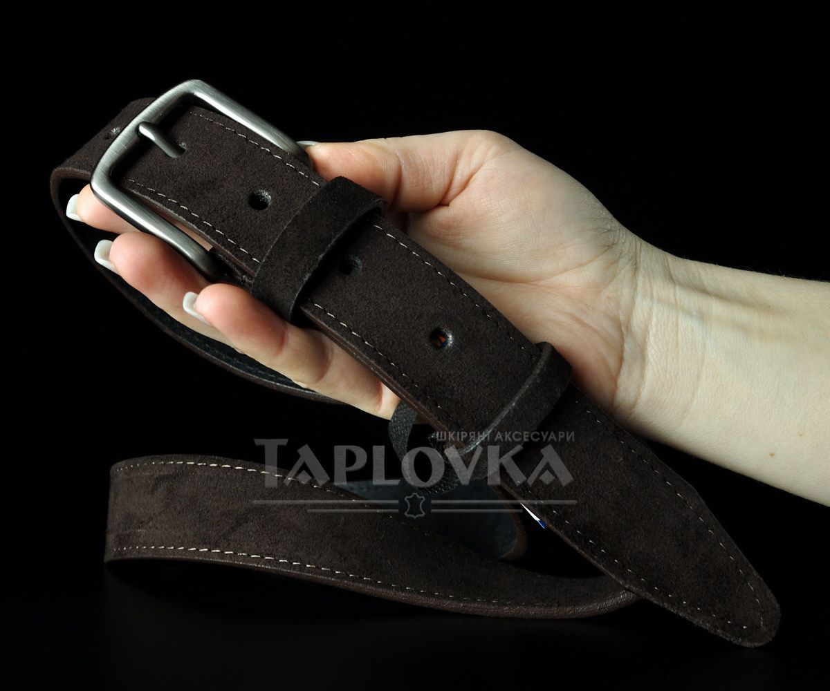 Чоловічий замшевий ремінь Kremen темно-коричневий 3,5 см (класична пряжка)