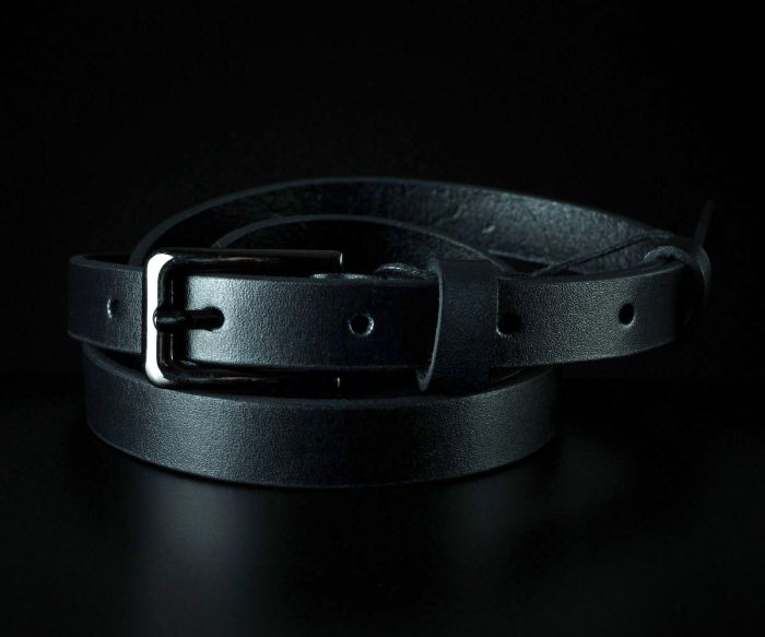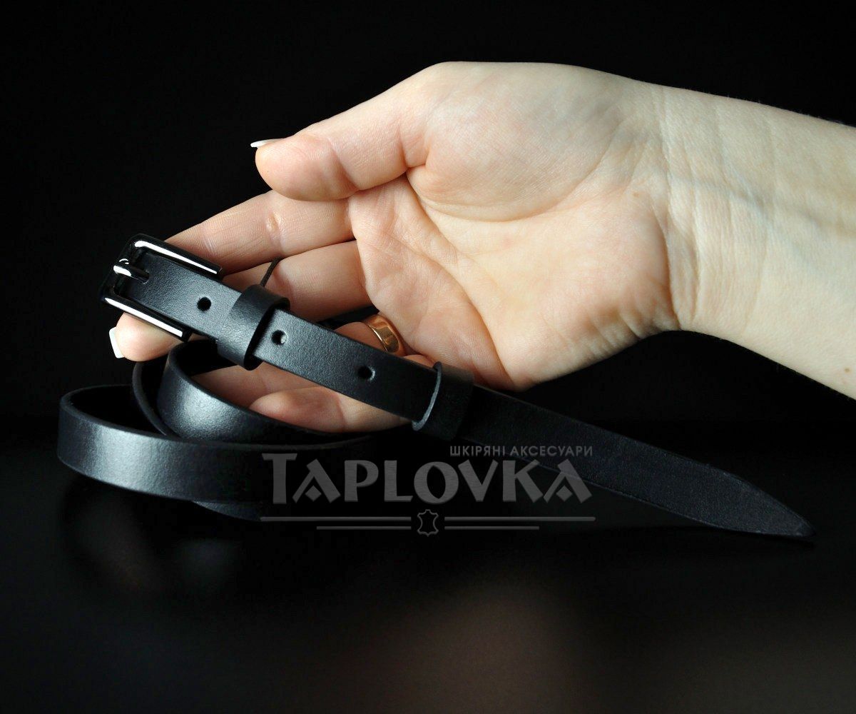Жіночий пасок від українського бренду Sfip у мінімалістичному стилі. Цей вузький аксесуар виготовлений зі 100% натуральної гладкої шкіри базового чорного кольору. Модель має ширину полотна 1,5 см та оснащена надійною класичною металевою пряжкою темного відтінку, що робить виріб максимально універсальним для щоденного використання.