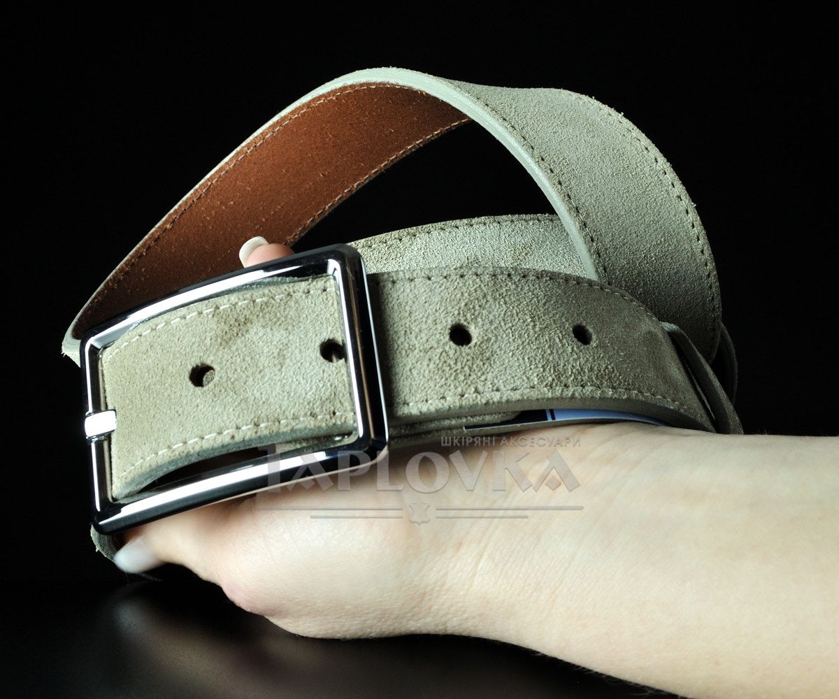 Елегантний та універсальний ремінь (унісекс), виготовлений з добірного натурального замшу шляхетного бежевого відтінку. Модель без гендерних обмежень, підходить як для чоловічого, так і для жіночого гардероба. Завдяки класичній ширині 3,5 см, аксесуар бездоганно пасує до ділових костюмів, класичних штанів та джинсів.