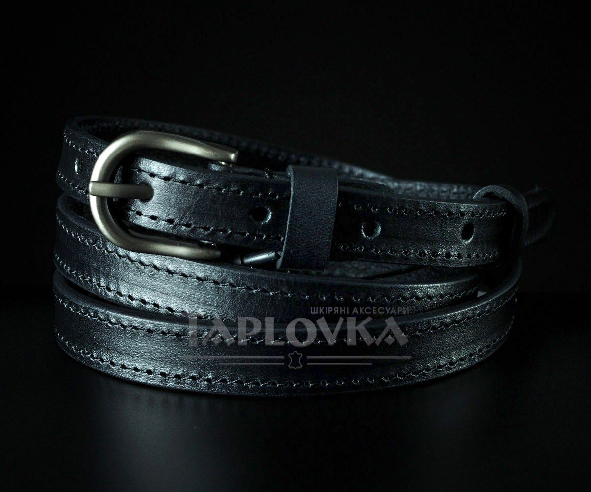 Жіночий шкіряний пасок Sfip чорний, гладкий з прошивкою (1,5 см)