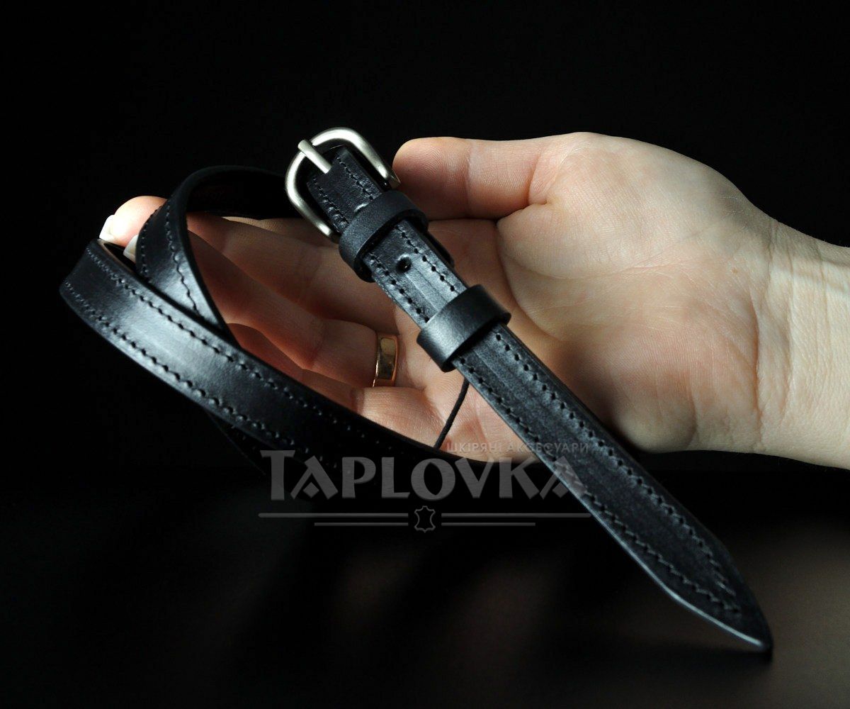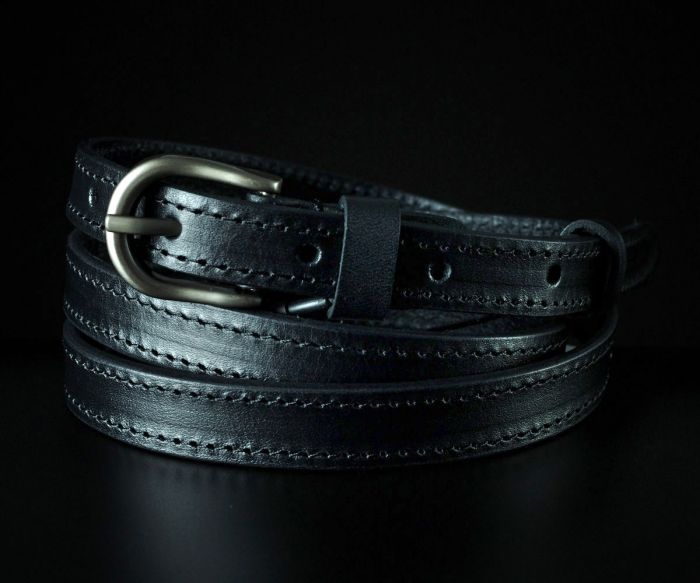 Базовий жіночий ремінець від українського виробника Sfip. Виріб виконано зі 100% натуральної гладкої шкіри класичного чорного кольору. Особливістю цієї моделі є акуратна прошивка вздовж усього полотна, що додає виробу міцності та візуальної завершеності. Завдяки невеликій ширині у 1,5 см та класичній темній металевій пряжці, цей аксесуар легко комбінується з різними елементами гардероба.