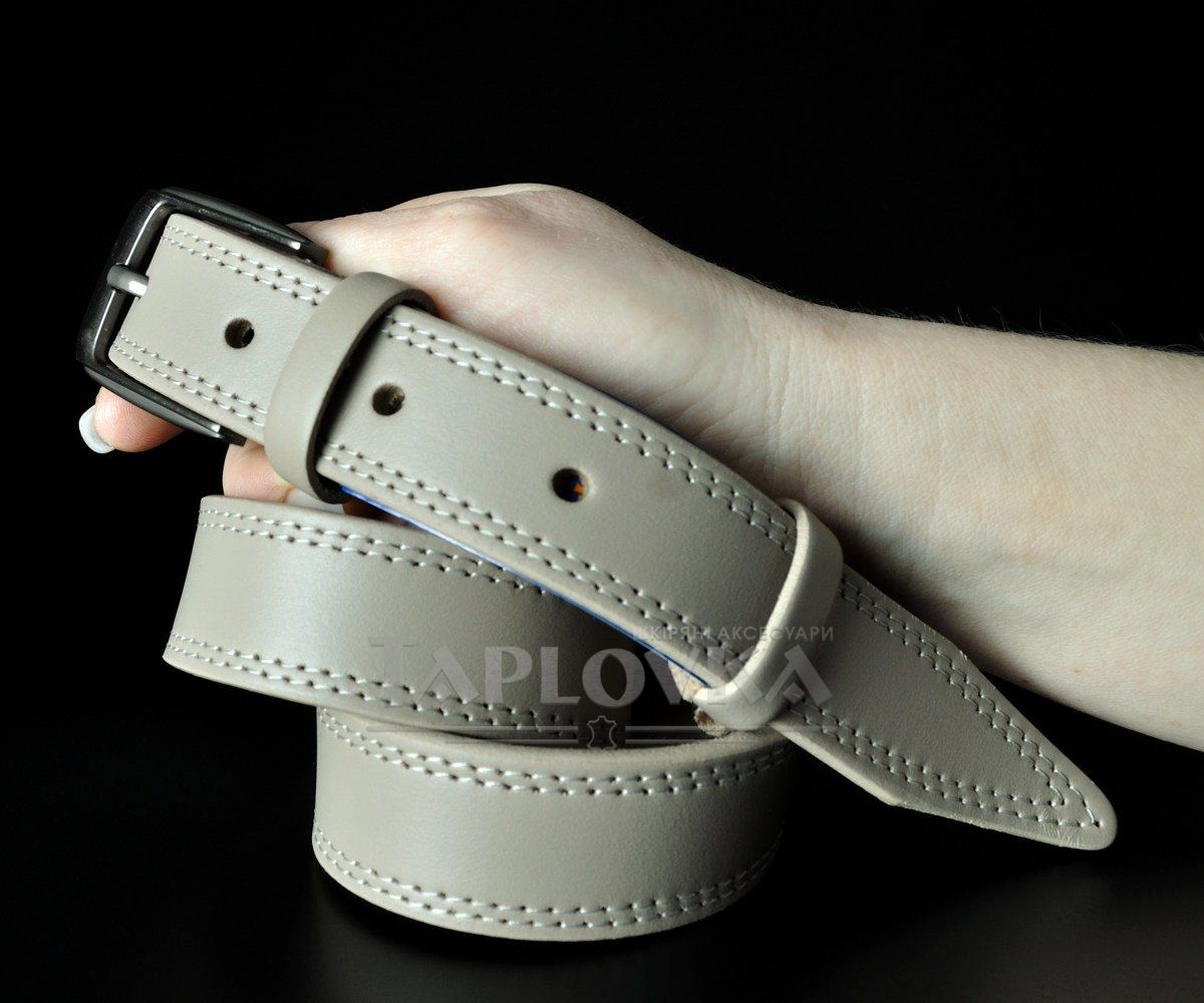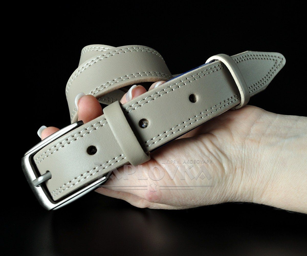 Жіночий шкіряний ремінь Kremen бежевий, з подвійною прошивкою (3 см)
