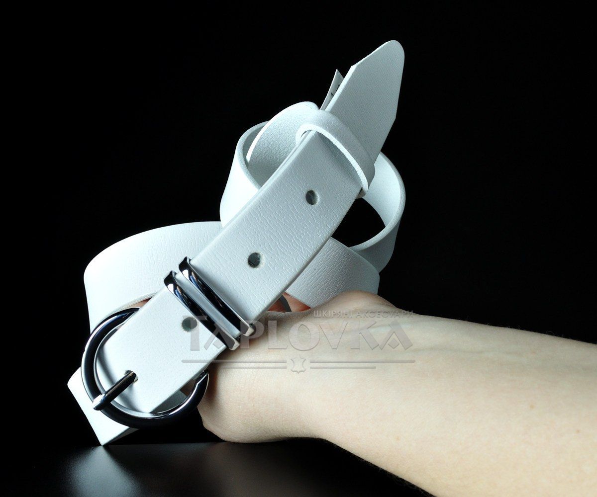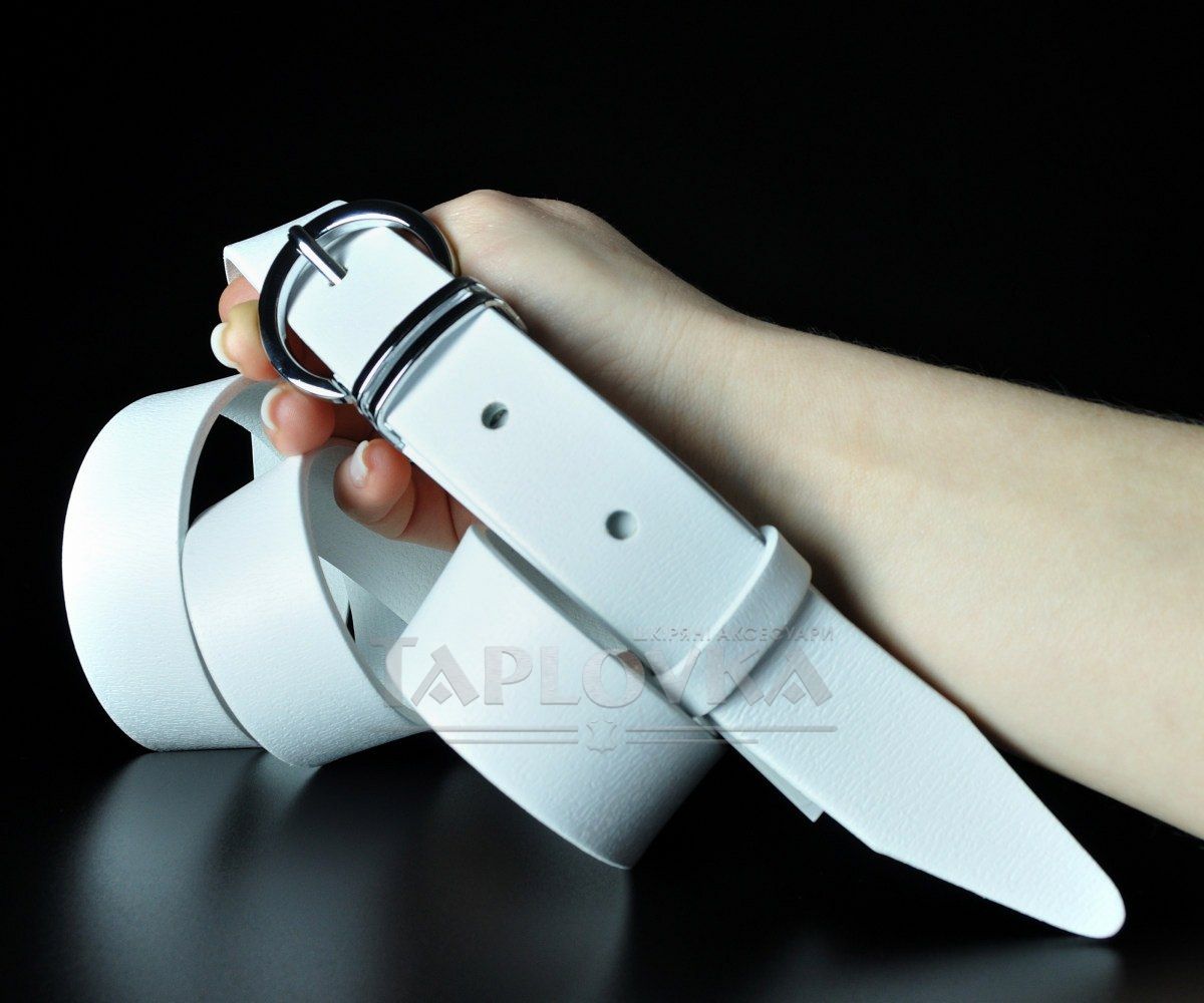 Жіночий шкіряний ремінь Kremen білий, напівкругла пряжка (3 см)