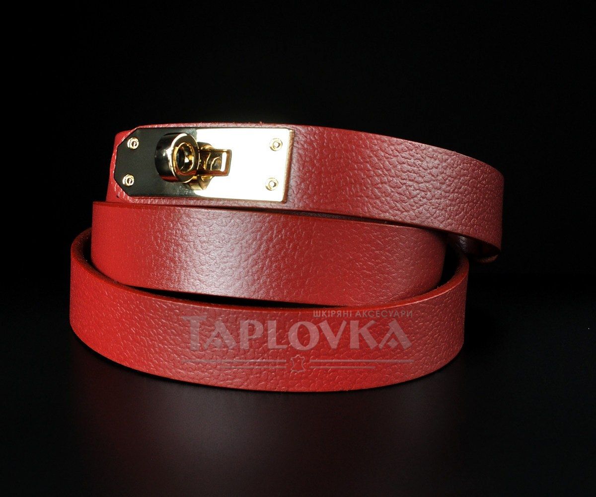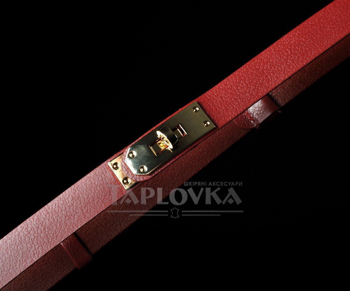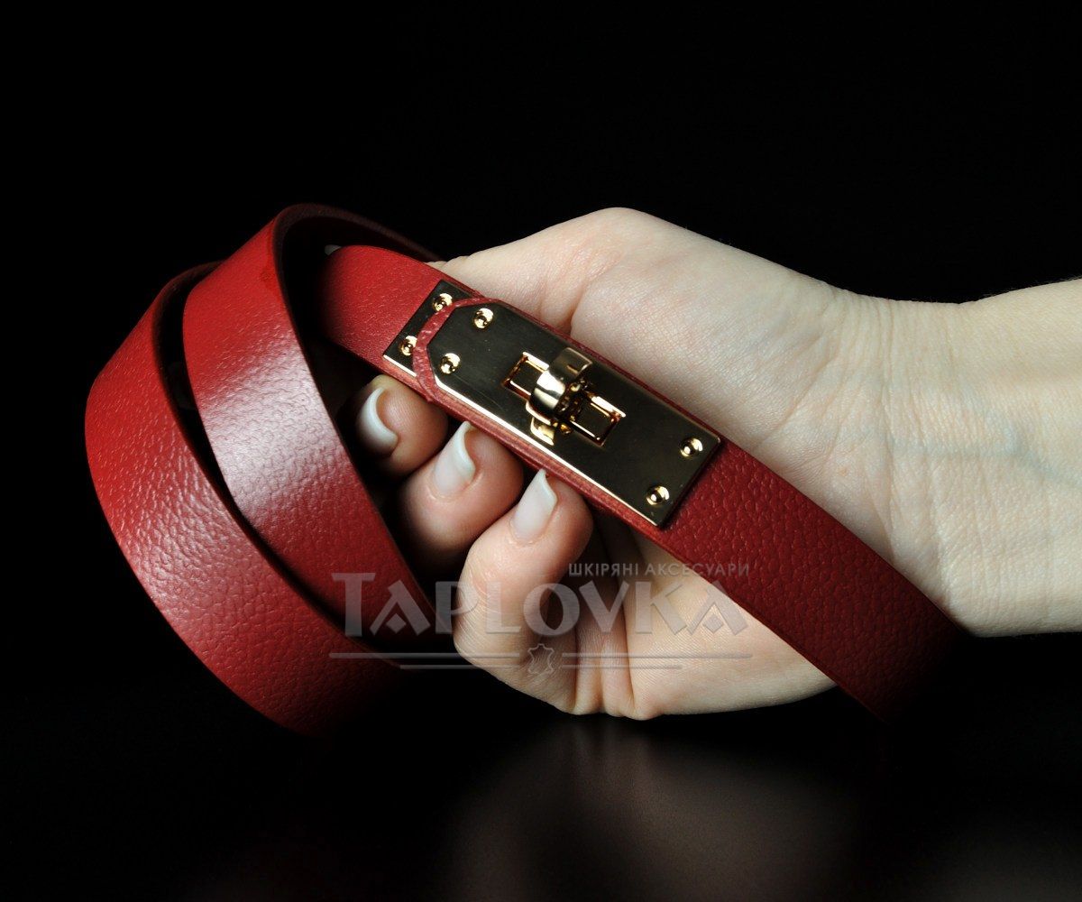 Вузький жіночий ремінь від бренду Kremen у яскравому та сміливому виконанні. Аксесуар виготовлено зі 100% натуральної шкіри насиченого червоного кольору зі слабо вираженою зернистою фактурою. Головною особливістю цієї моделі є оригінальна металева пряжка у вигляді замка золотистого кольору. Вона не лише слугує ефектним акцентом, але й забезпечує плавне та зручне регулювання довжини без використання класичних отворів. Ширина полотна становить 2 см, що робить пасок витонченим доповненням, здатним підкреслити талію та додати барв до будь-якого образу.