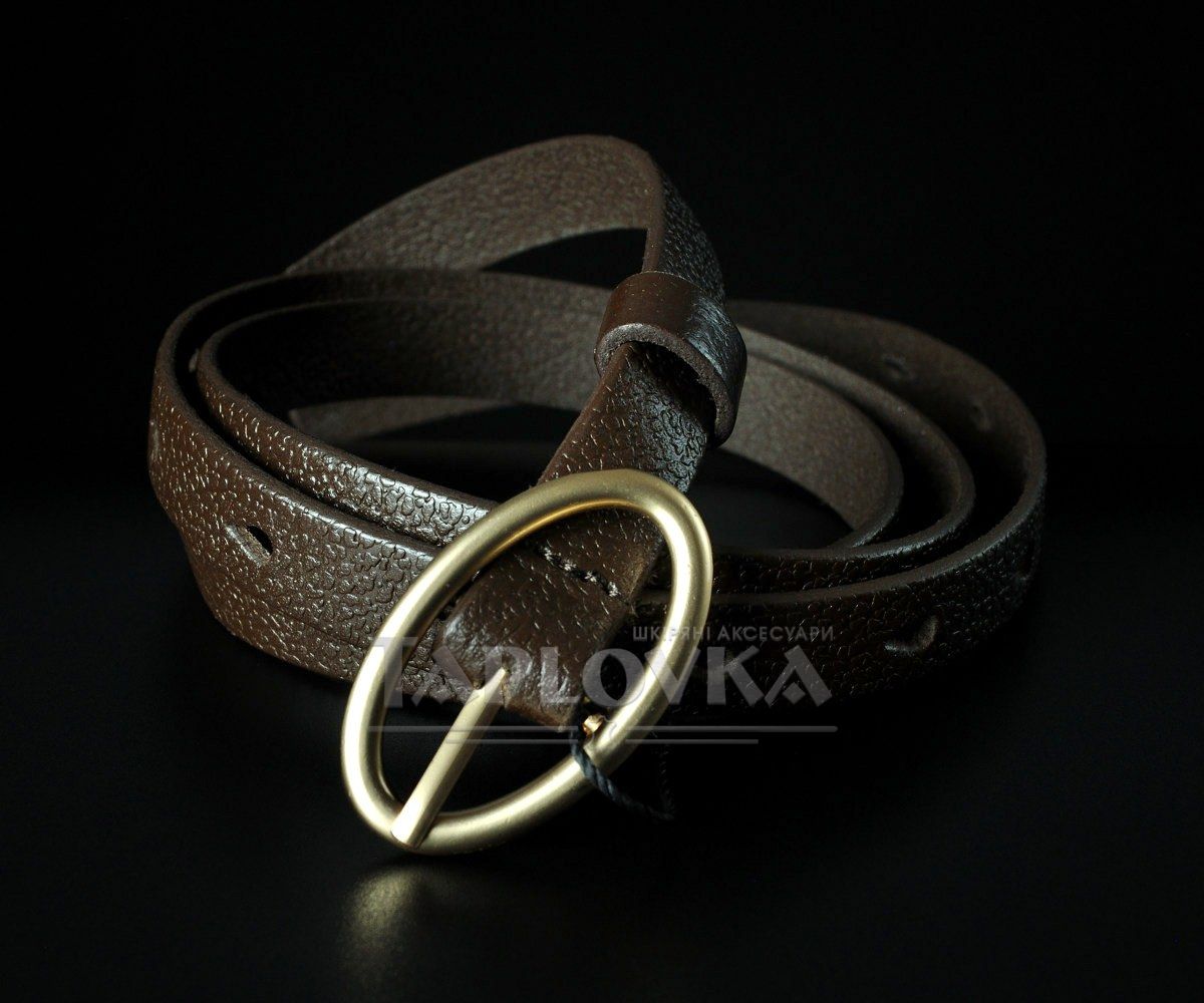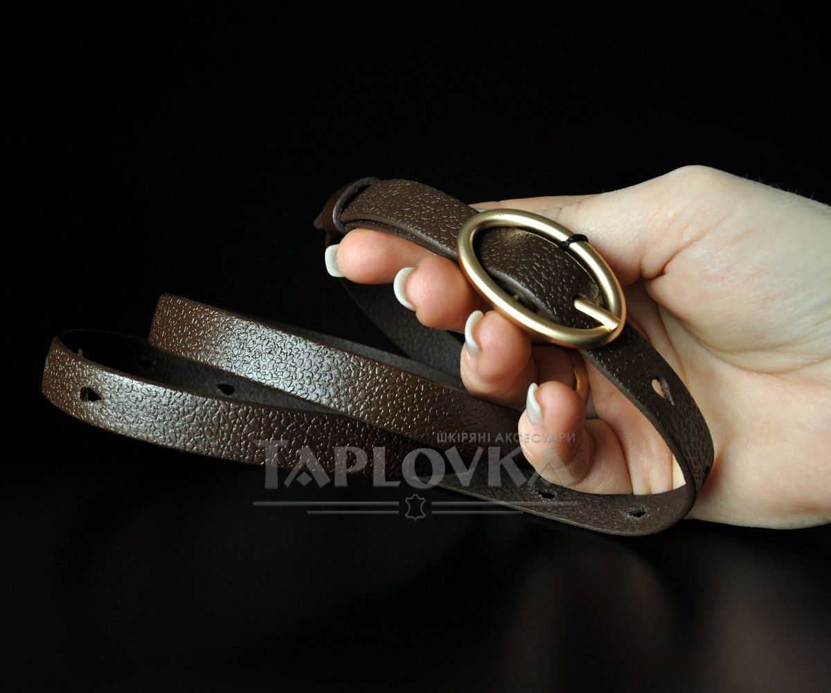 Жіночий шкіряний ремінь Kremen коричневий, овальна пряжка (1,5 см)
