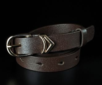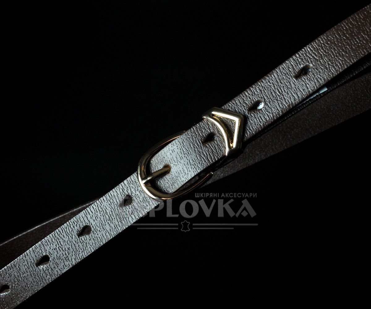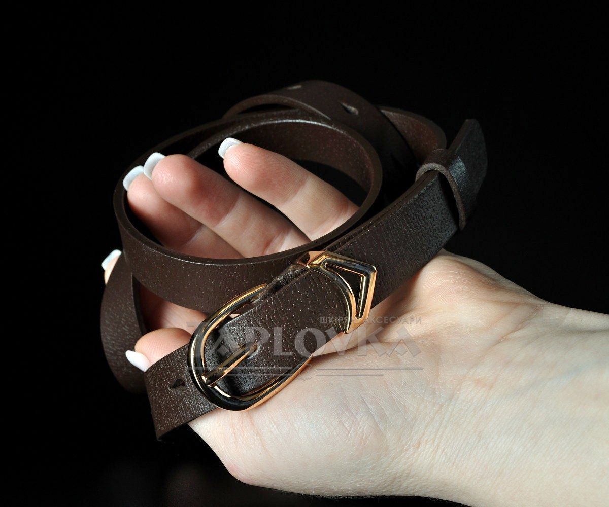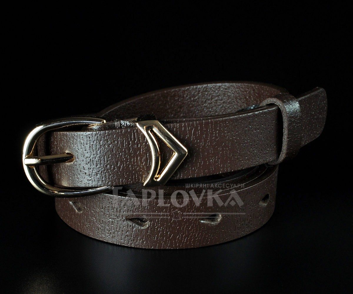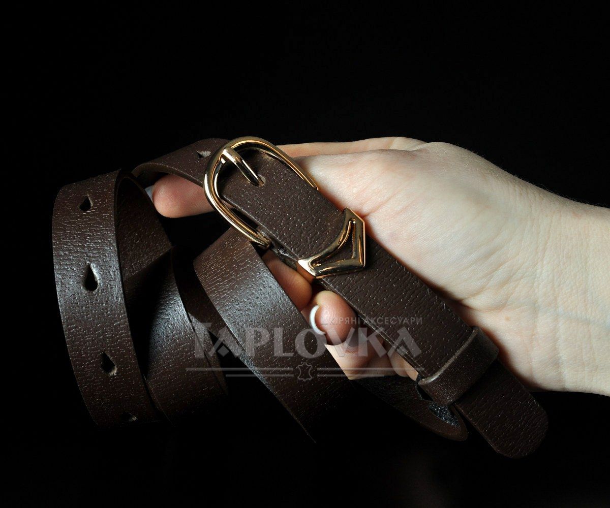 Елегантний вузький жіночий ремінь від українського бренду Kremen. Аксесуар виготовлено зі 100% натуральної шкіри у класичному коричневому кольорі з вираженою структурною фактурою. Модель гармонійно доповнена металевою пряжкою класичної форми у золотистому кольорі. Завдяки делікатній ширині 2 см, цей пасок є універсальним вибором: він чудово підходить для підкреслення талії на сукнях, туніках, подовжених сорочках, а також стане стильним доповненням для класичних штанів.
