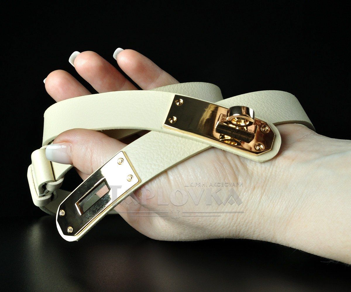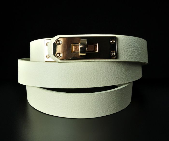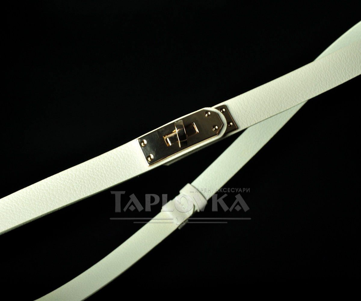 Вузький жіночий ремінь від бренду Kremen у світлому та ніжному виконанні. Аксесуар виготовлено зі 100% натуральної шкіри молочного кольору з гладкою фактурою. Головною особливістю цієї моделі є оригінальна металева пряжка у вигляді замка золотистого кольору. Вона не лише слугує стильним акцентом, але й забезпечує плавне та зручне регулювання довжини без використання класичних отворів. Ширина полотна становить 2 см, що робить пасок витонченим та універсальним доповненням до будь-якого образу.