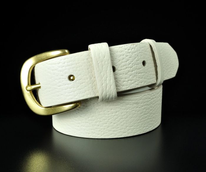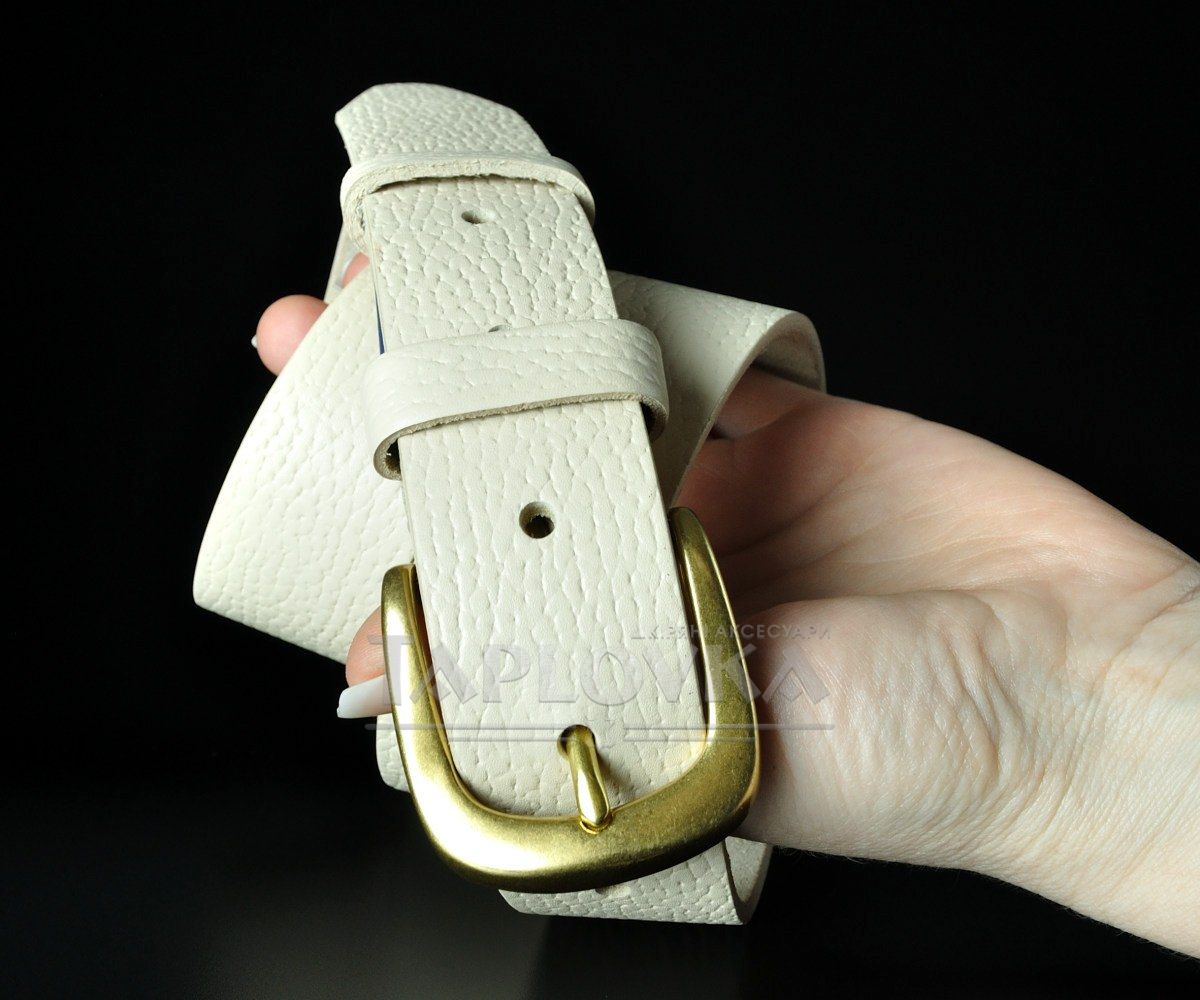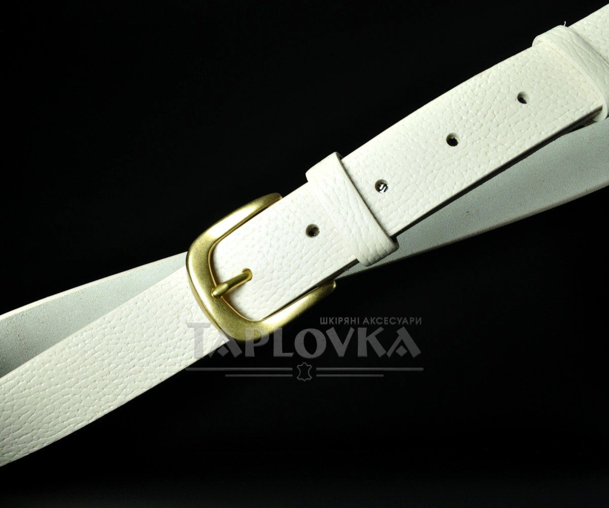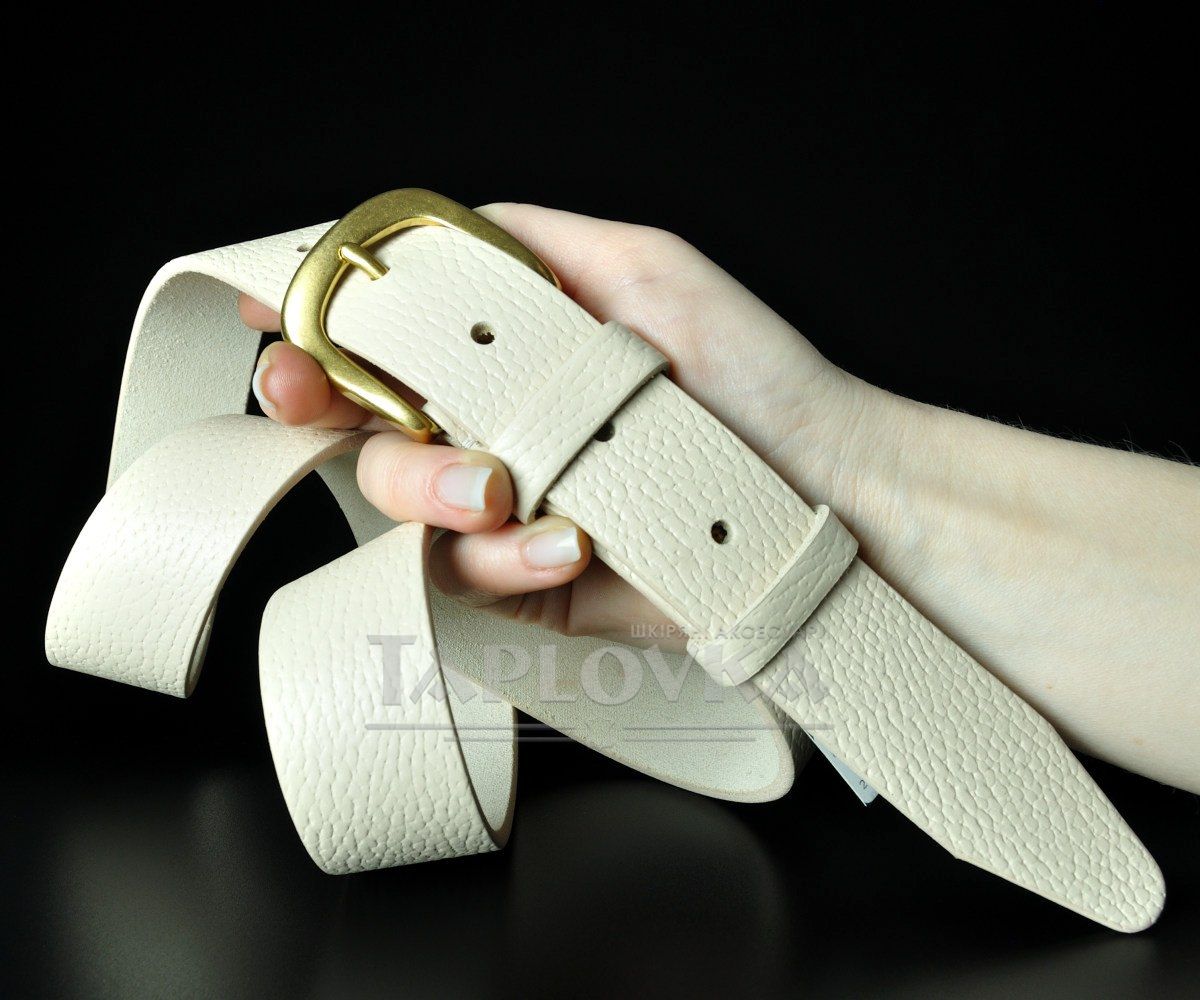 Жіночий шкіряний ремінь Kremen молочний, зернистий (3,5 см)