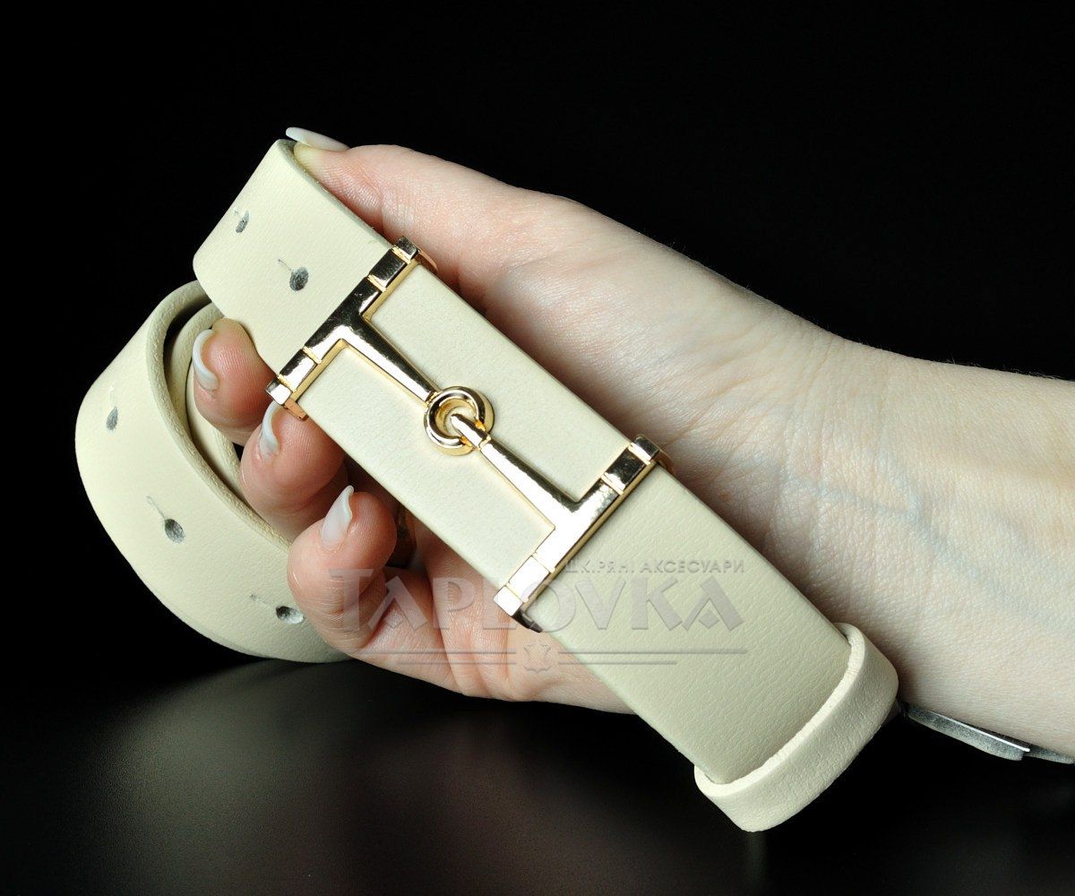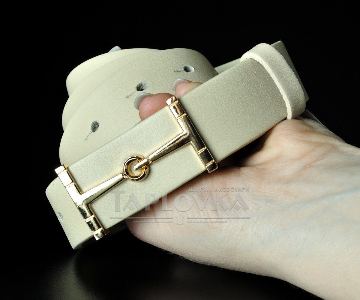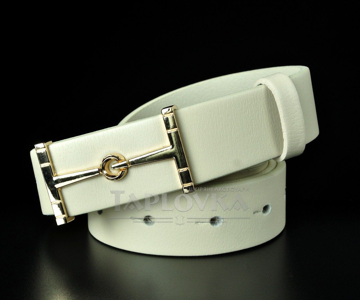Жіночий шкіряний ремінь Kremen молочного кольору, пряжка-гвоздик (3 см)