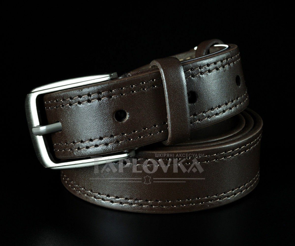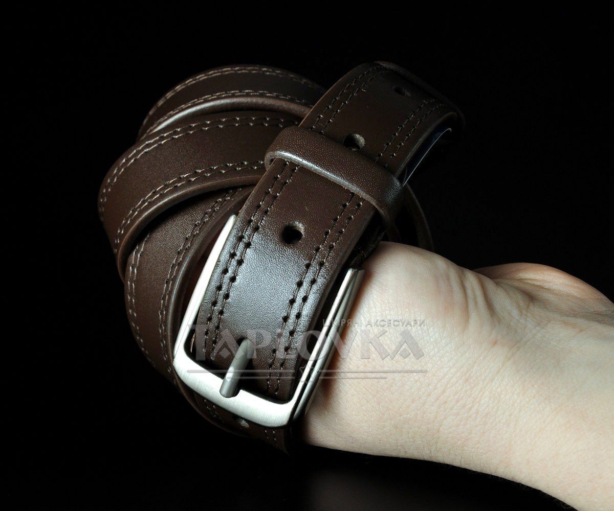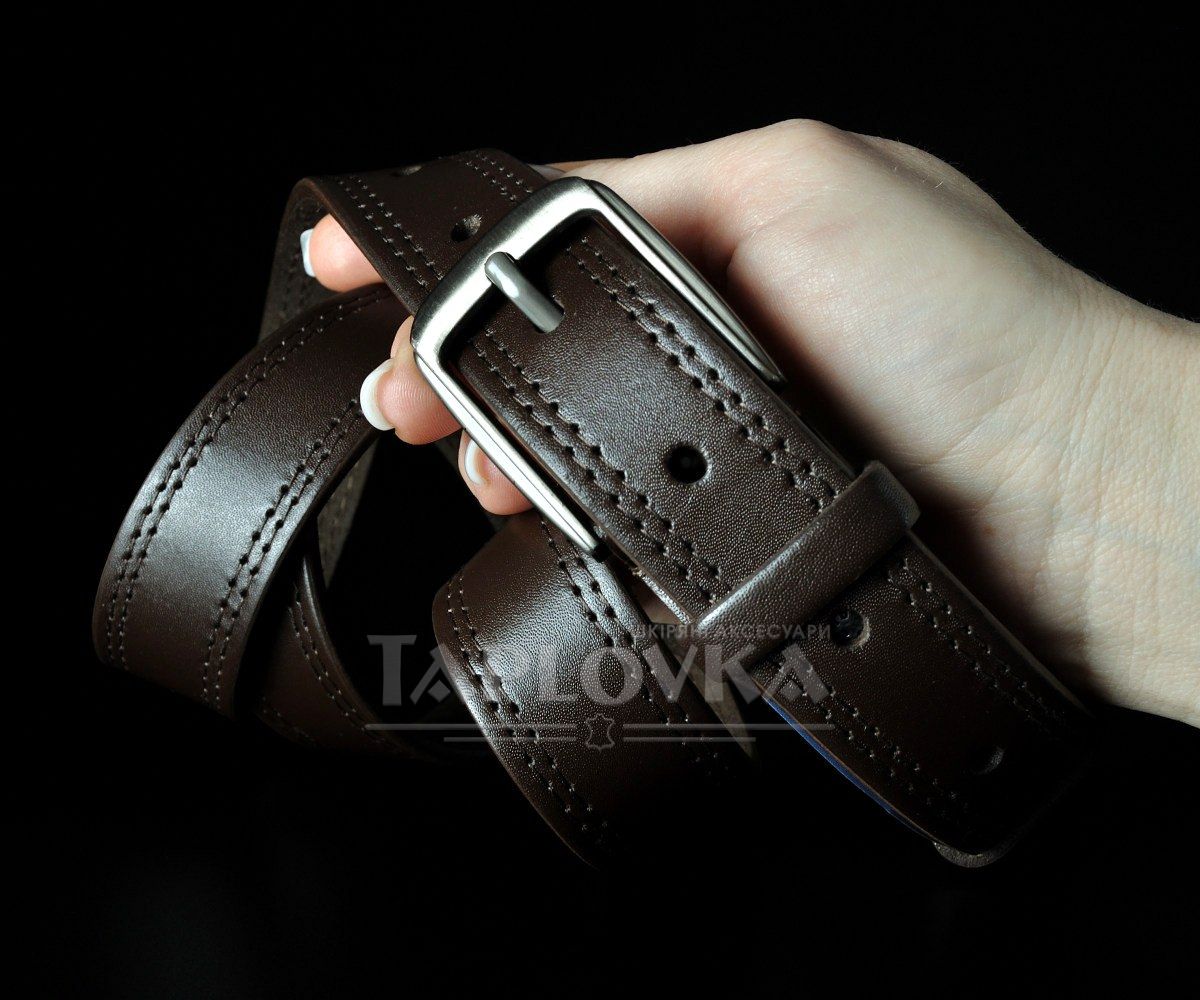 Жіночий шкіряний ремінь Kremen темно-коричневий, з подвійною прошивкою (3 см)