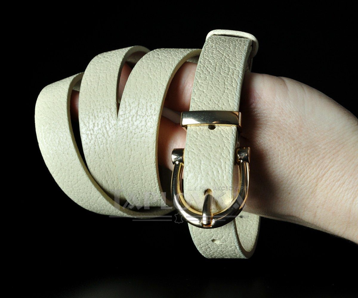 Жіночий турецький шкіряний ремінь молочний, зернистий (2 см)