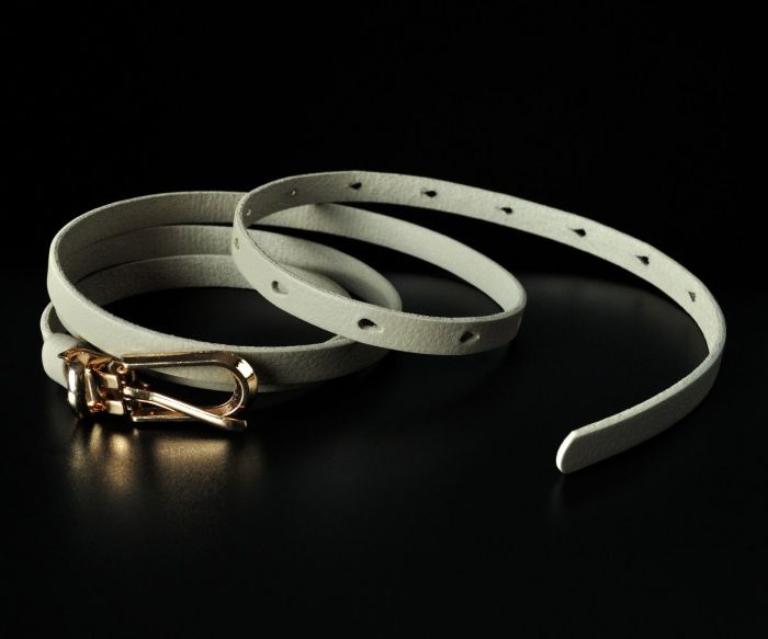 Жіночий вузький шкіряний ремінь Kremen бежевий, турецька шкіра (1 см)