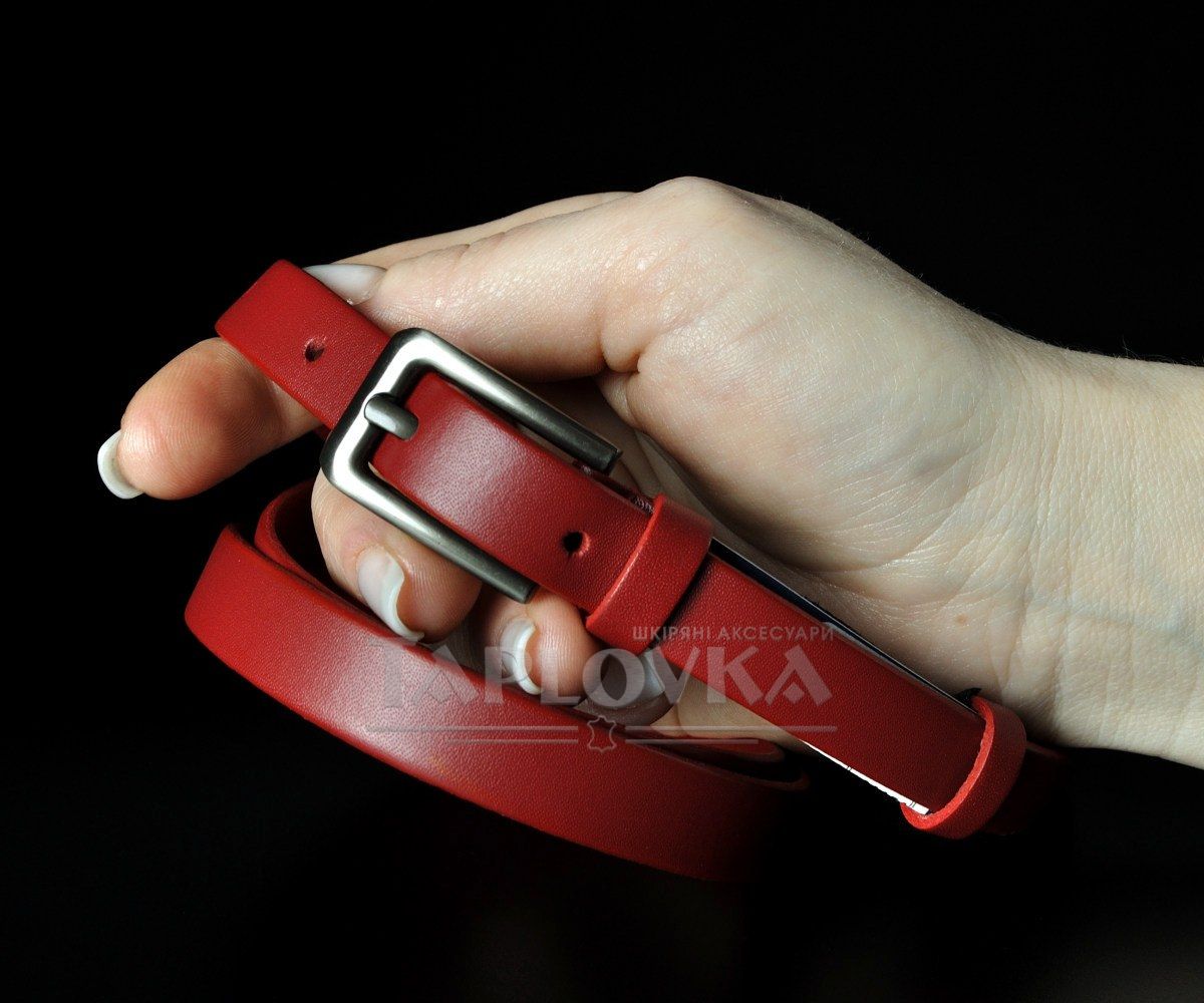 Жіночий вузький шкіряний ремінь Kremen червоний, гладкий (1,5 см)