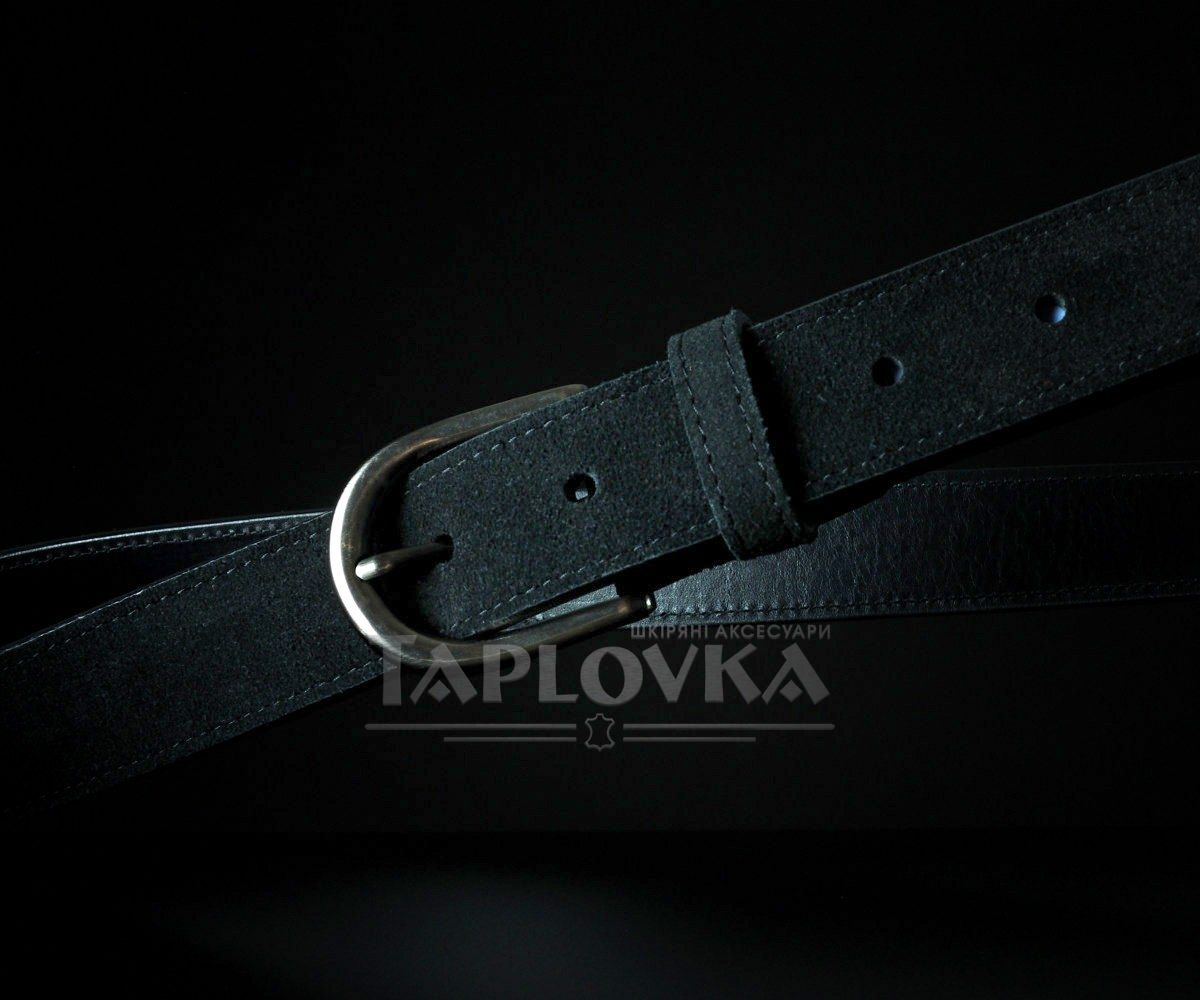 Жіночий ремінь від українського виробника Sfip, що поєднує в собі практичність та приємну текстуру. Виріб виконано зі 100% натуральної шкіри із замшевою поверхнею у базовому чорному кольорі. Полотно має акуратну прошивку вздовж країв, що підвищує зносостійкість аксесуара. Модель шириною 3,5 см укомплектована надійною металевою пряжкою класичного типу у відтінку темний нікель.
