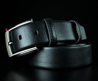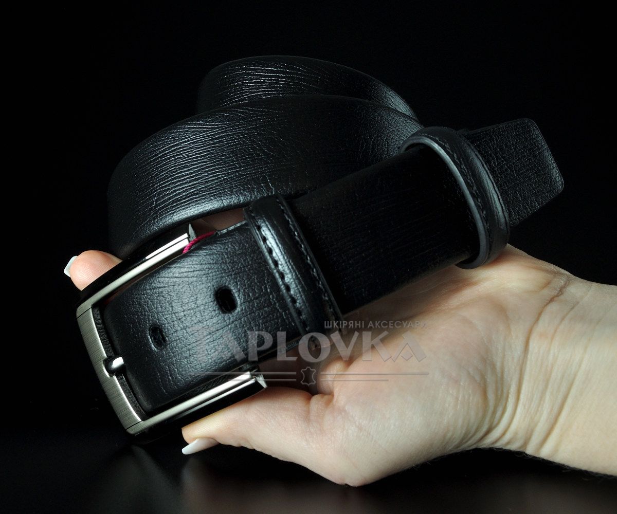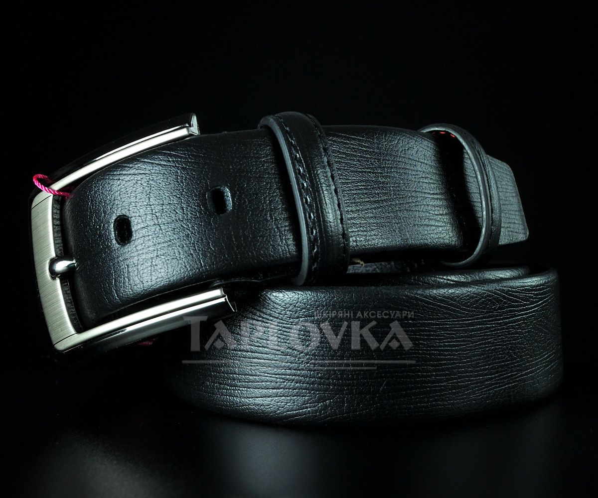 Ремінь виготовлено з добірної натуральної шкіри з глибокою фактурною поверхнею. Такий матеріал надзвичайно практичний: на зернистій шкірі майже не помітні сліди експлуатації та дрібні подряпини. Головний акцент моделі — масивна металева пряжка класичного типу, що підкреслює мужній характер виробу та гарантує надійну фіксацію полотна.
