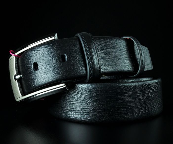 Чоловічий ремінь De Esse з масивною класичною пряжкою, чорна фактурна шкіра (3,7 см)а515