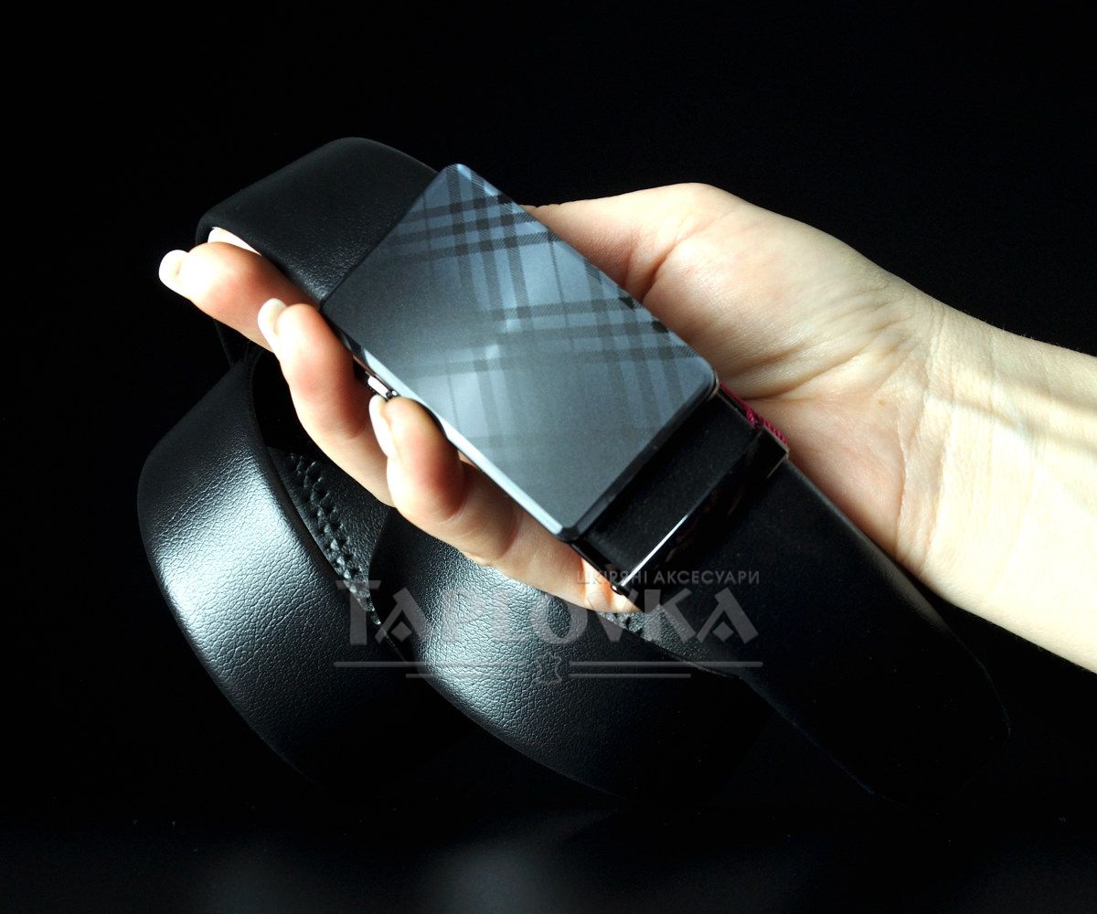 Чоловічий шкіряний ремінь De Esse чорний автомат (133 см), пряжка з переливом