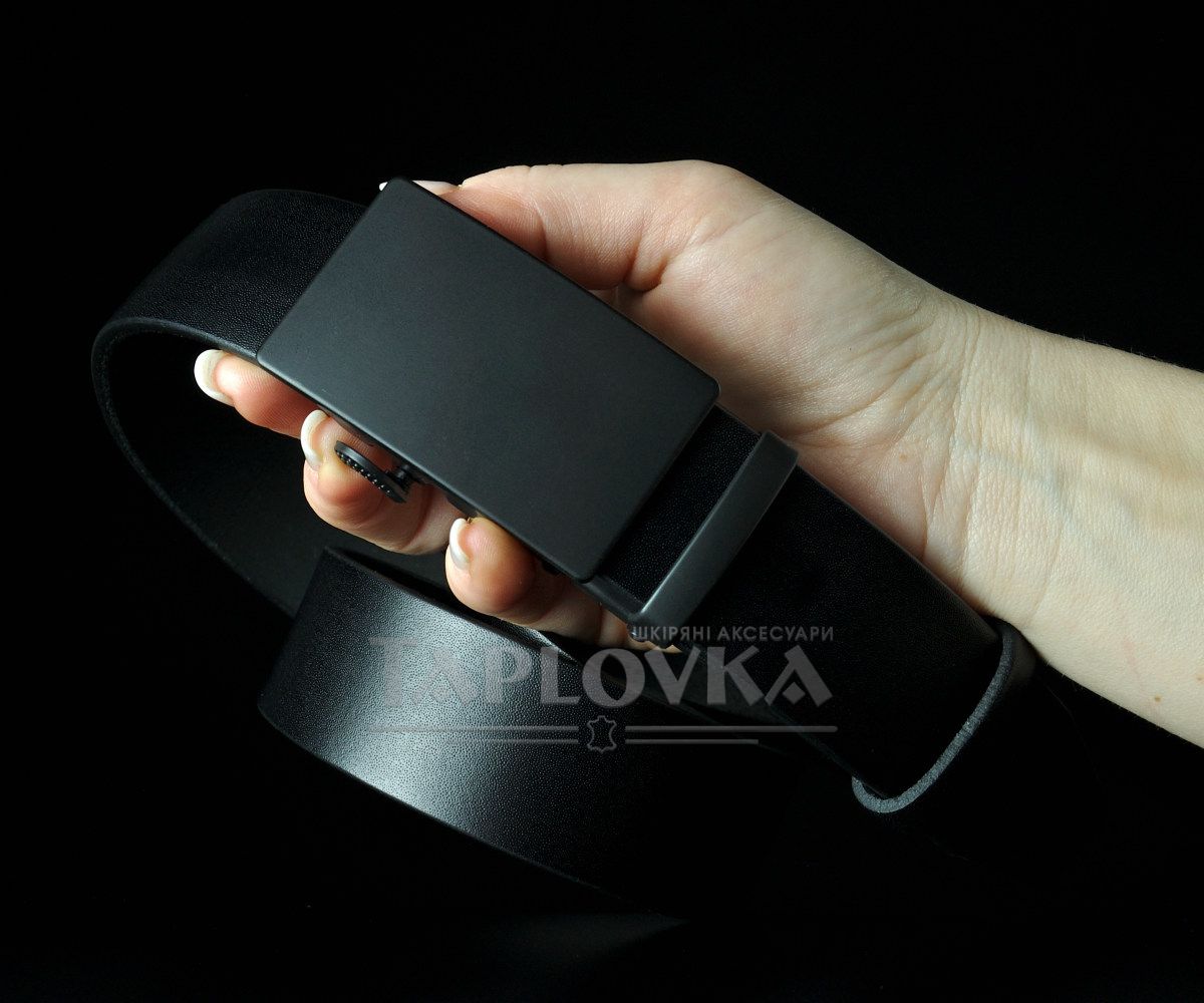 Чоловічий шкіряний ремінь Kremen чорний 3,7 см — 122 см (чорна матова пряжка автомат)