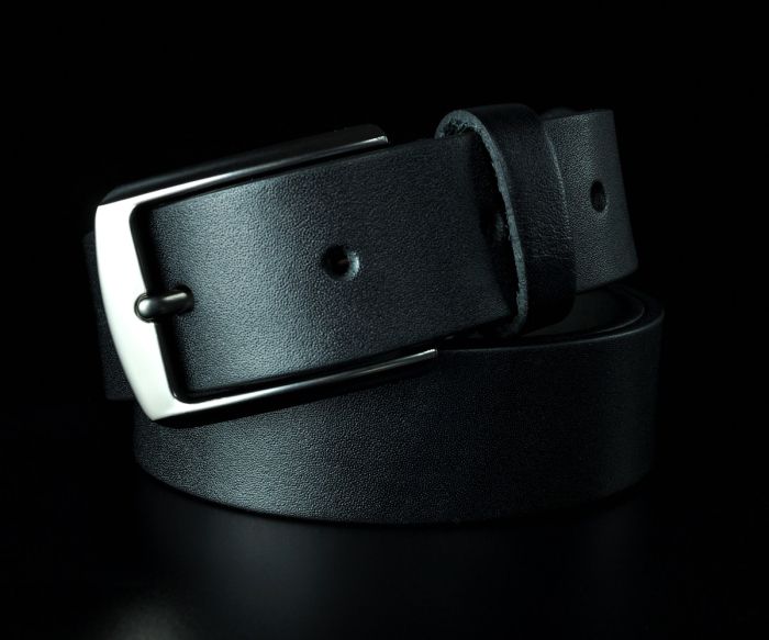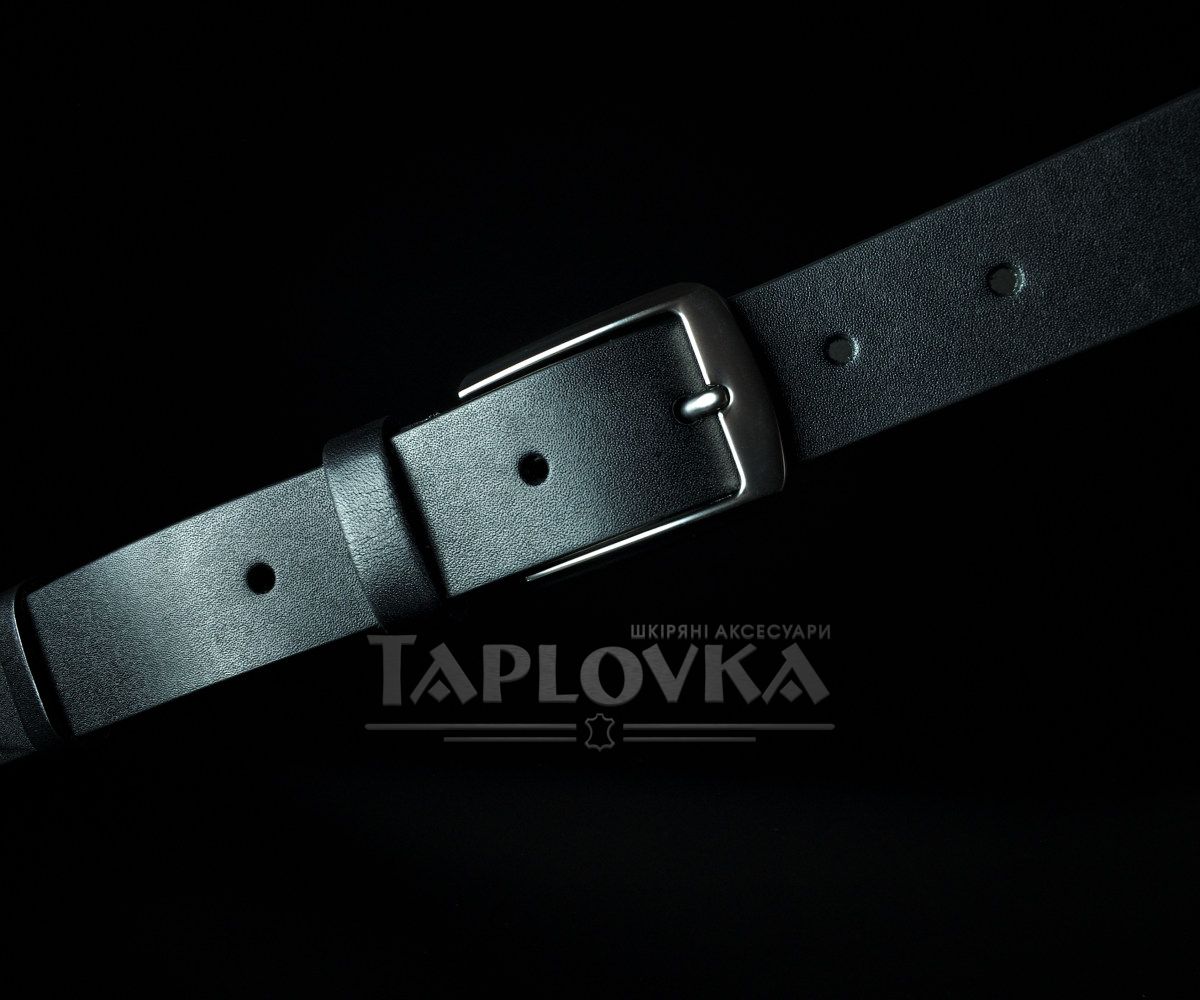Чоловічий шкіряний ремінь Kremen чорний гладкий 3,5 см (класична пряжка)