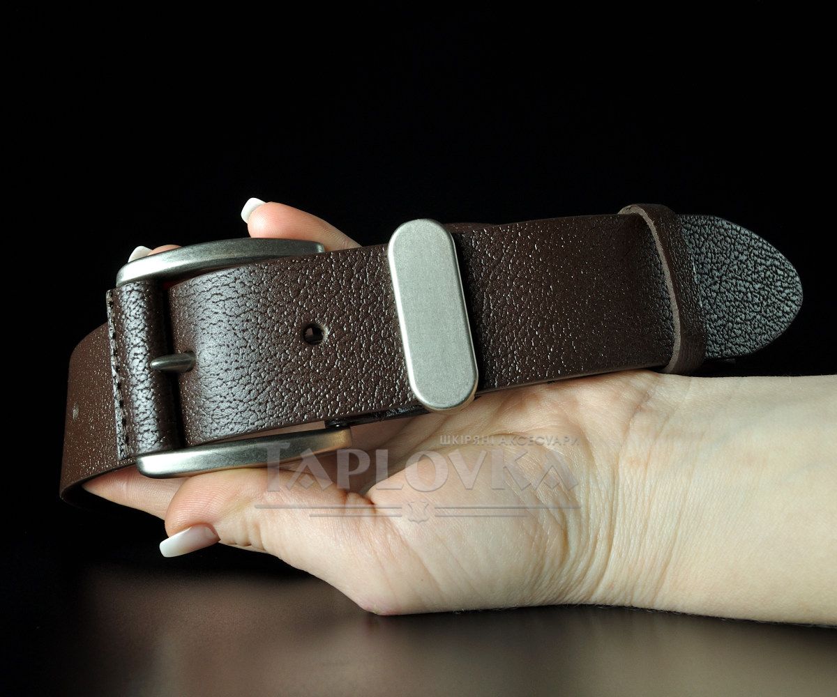 Чоловічий шкіряний ремінь Kremen коричневий структурний 4 см — 125 см (класична пряжка)