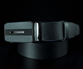 Чоловічий шкіряний ремінь SFIP автомат, гладкий чорний з матовою пряжкою (3,5 см)