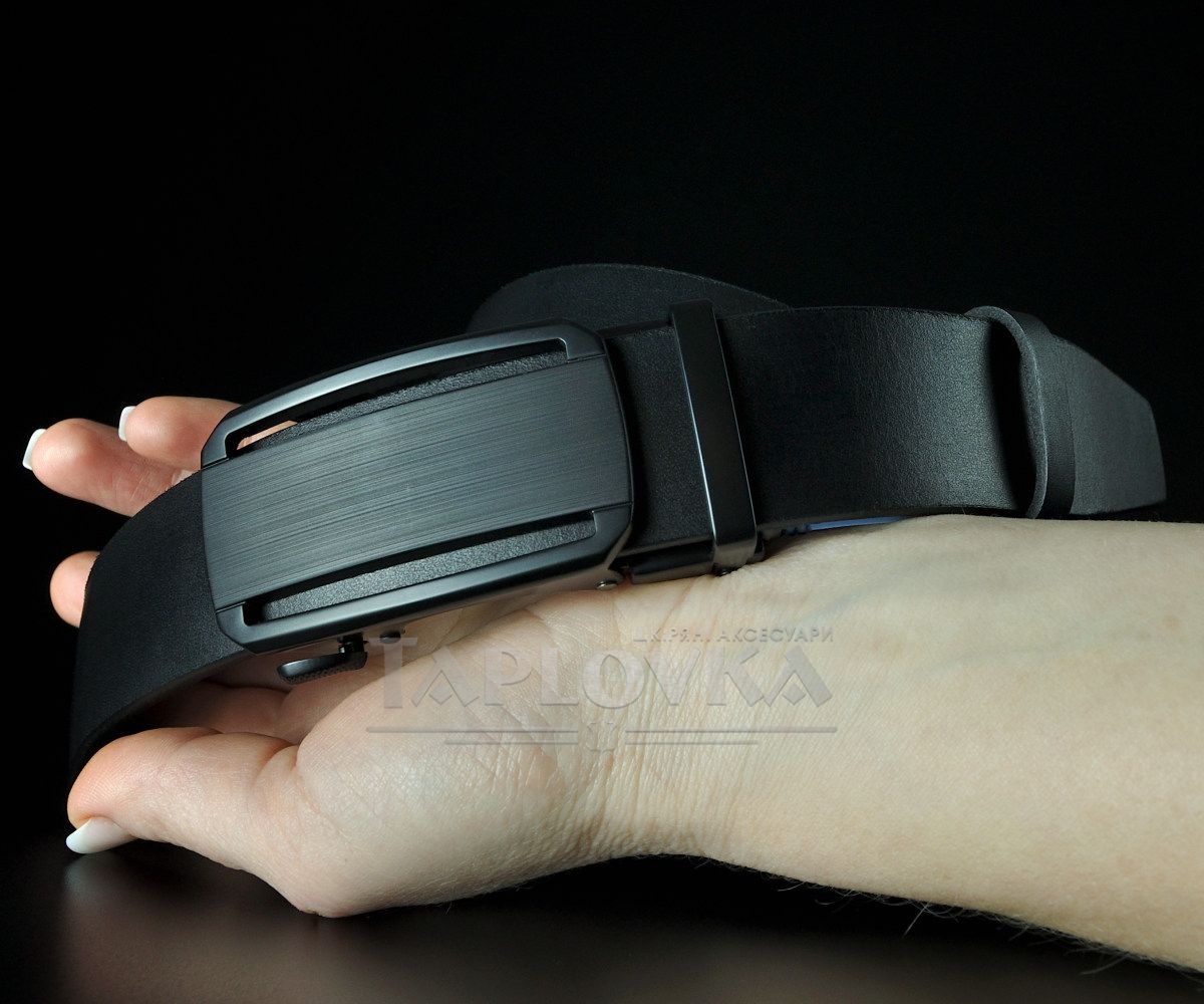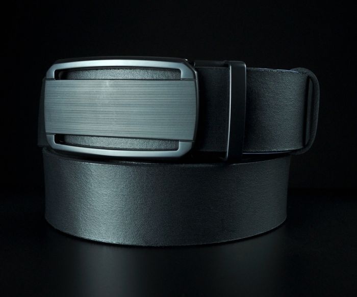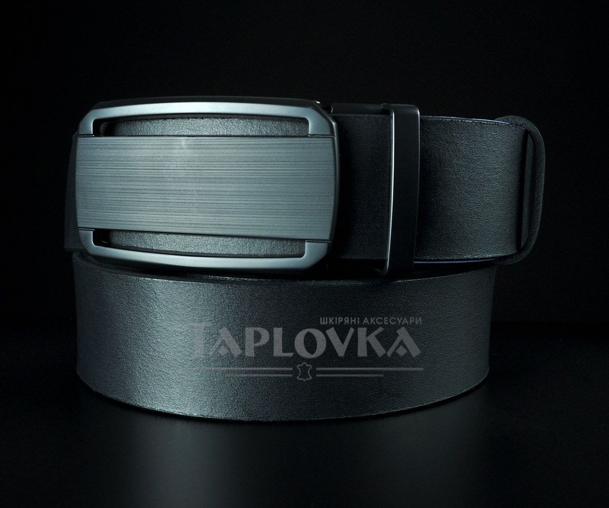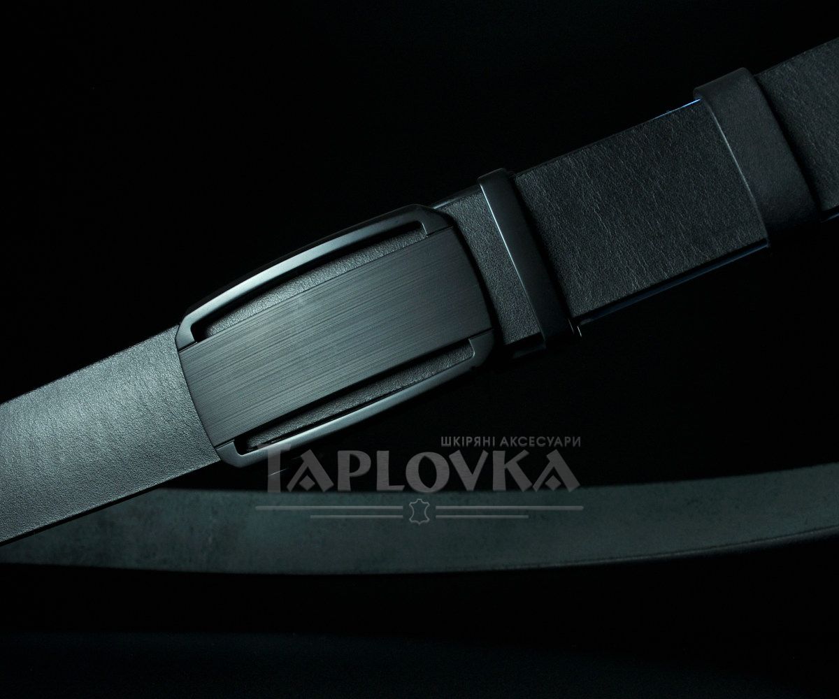 Ремінь виготовлено з добірної натуральної гладкої шкіри чорного кольору. Гладкий край підкреслює природну красу матеріалу та робить пояс універсальним доповненням до будь-яких штанів. Особливий акцент — матова автоматична пряжка з горизонтальним лінійним візерунком. Вона не лише стильно виглядає, а й дуже практична у використанні, адже на такій поверхні не залишається відбитків пальців.
