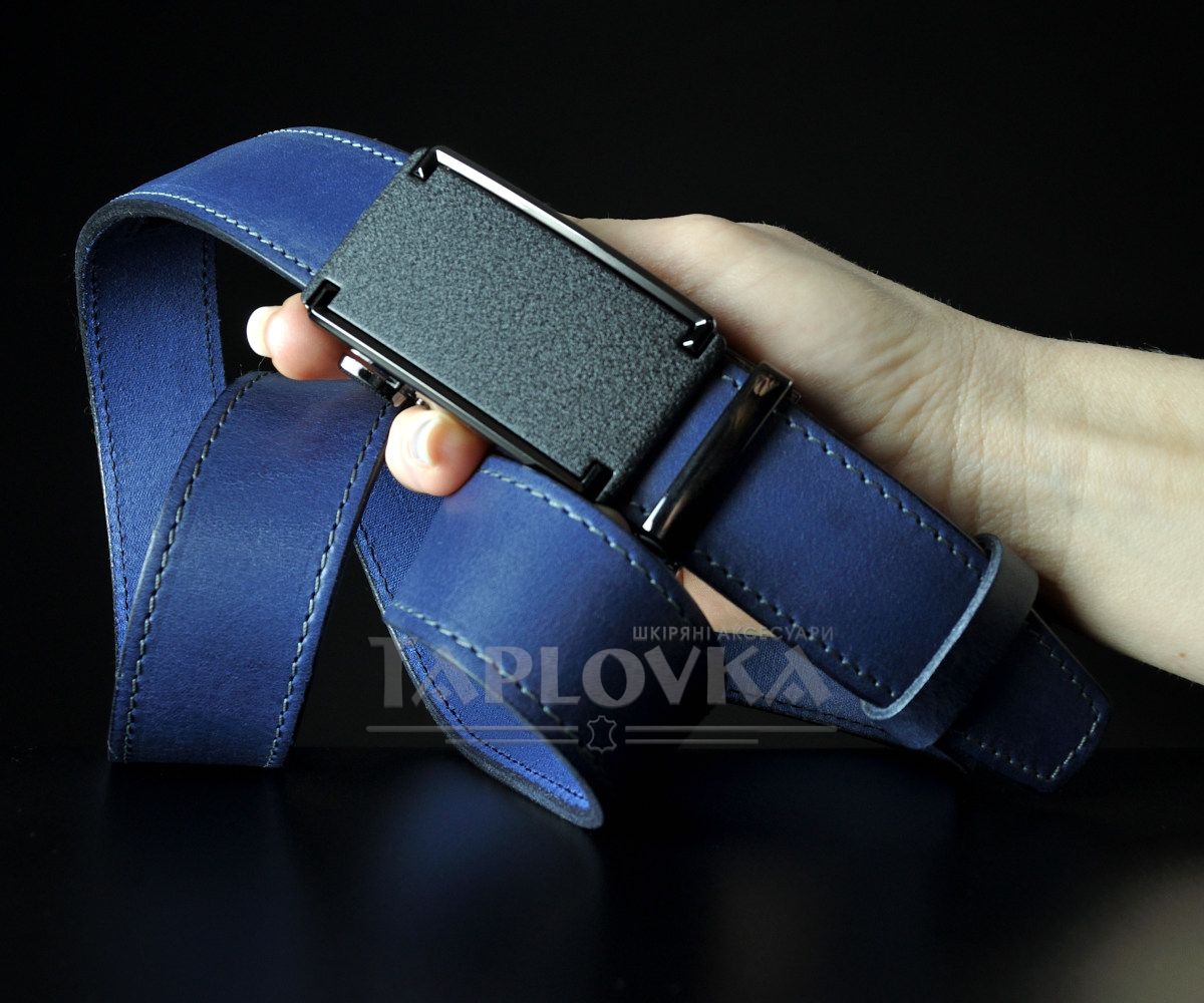 Чоловічий синій ремінь SFIP автомат прошитий, лаконічна матова пряжка (3,5 см)