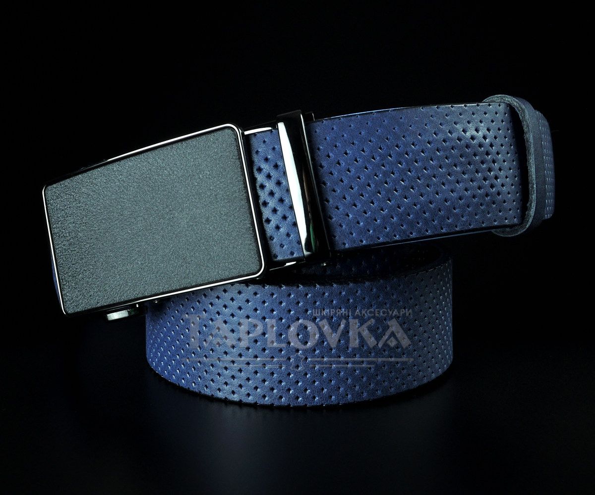 Чоловічий синій ремінь SFIP автомат з фактурним тисненням (3,5 см)