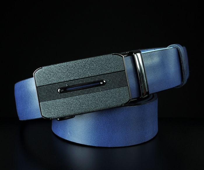 Чоловічий синій ремінь SFIP автомат з гладкої шкіри, пряжка з вишуканою вставкою (3,5 см)