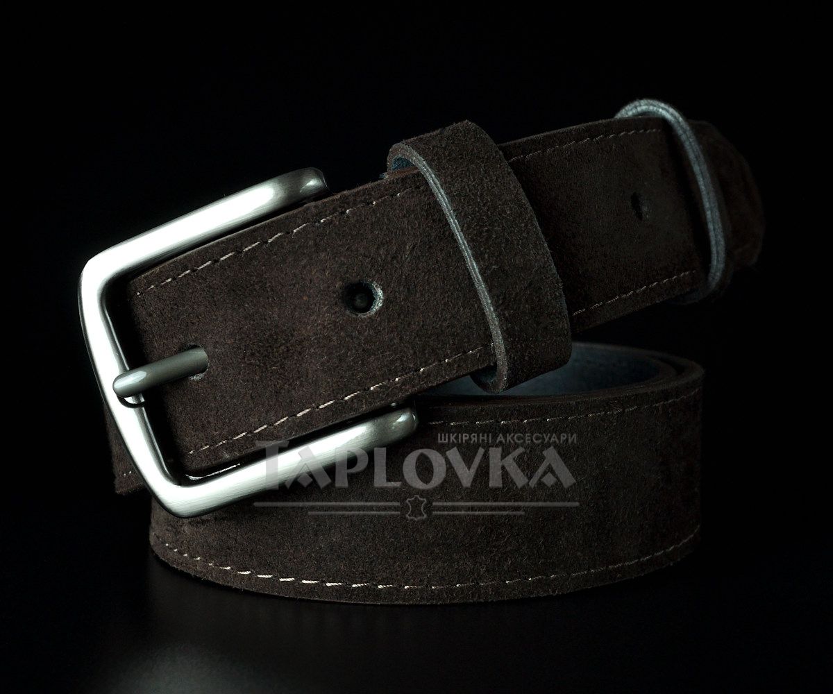 Чоловічий замшевий ремінь Kremen темно-коричневий 3,5 см (класична пряжка)