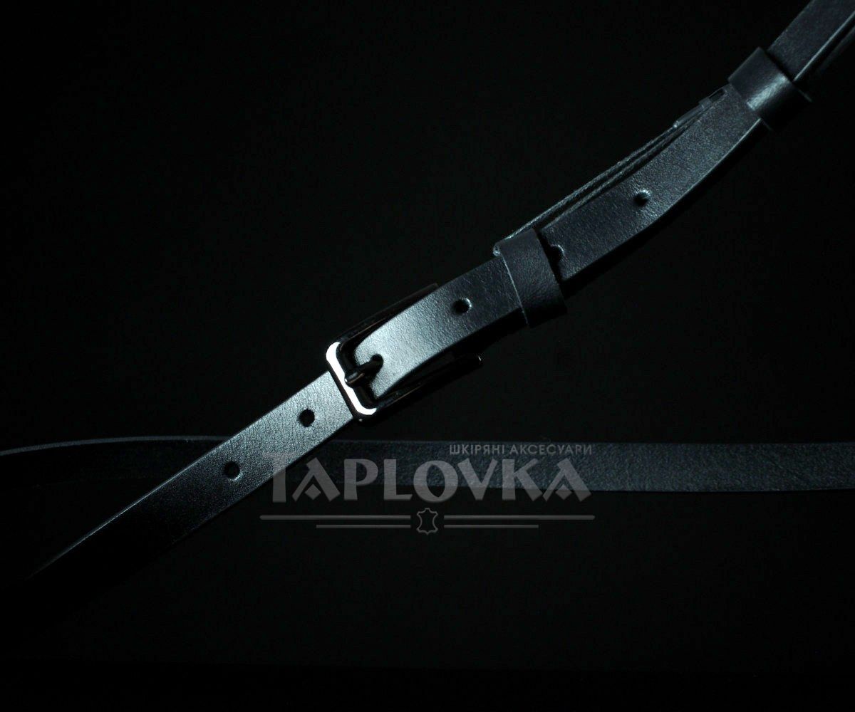 Жіночий пасок від українського бренду Sfip у мінімалістичному стилі. Цей вузький аксесуар виготовлений зі 100% натуральної гладкої шкіри базового чорного кольору. Модель має ширину полотна 1,5 см та оснащена надійною класичною металевою пряжкою темного відтінку, що робить виріб максимально універсальним для щоденного використання.